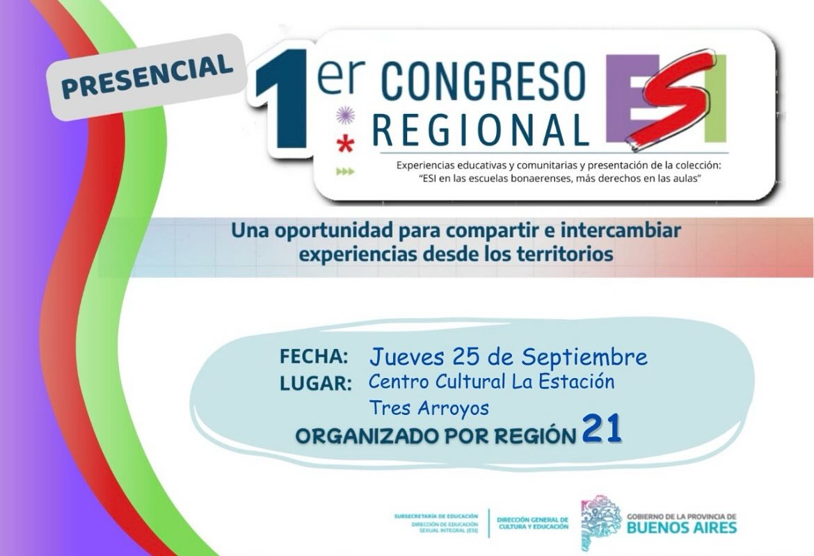 En Tres Arroyos habrá de realizarse el primer congreso regional de ESI en el Centro Cultural La Estación a partir de las 09:00 hs.