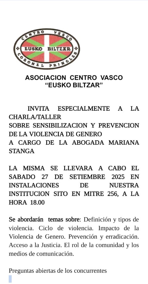 Mañana  sábado se realizará la charla taller la que estará a cargo de la abogada Mariana Stanga a la hora 18:00