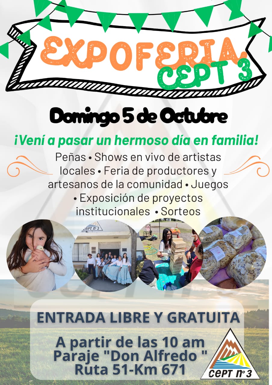En instalaciones del Centro Educativo para la Producción Total Nº 3 se desarrollará la expo feria.