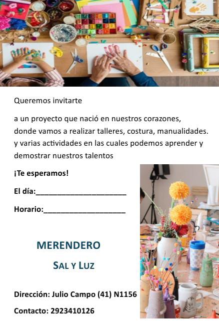 El próximo martes en el merendero Sal y Luz se habrán de realizar talleres.