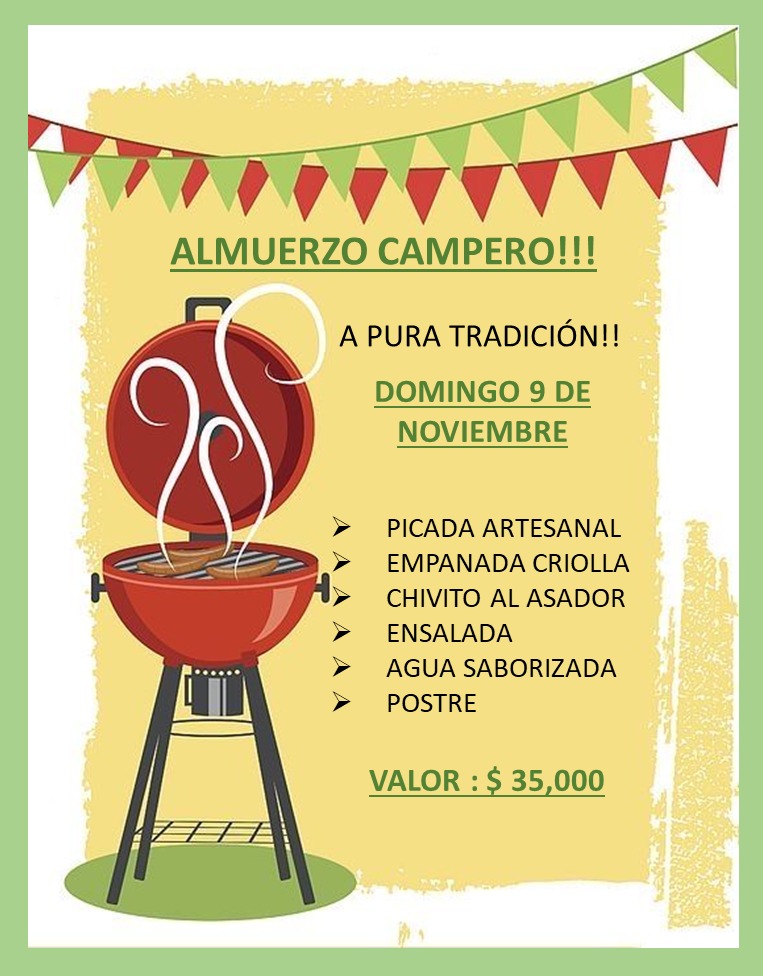 En la oportunidad se servirá picada artesanal, empanada criolla, chivito al asador, ensalada, agua saborizada y postre.