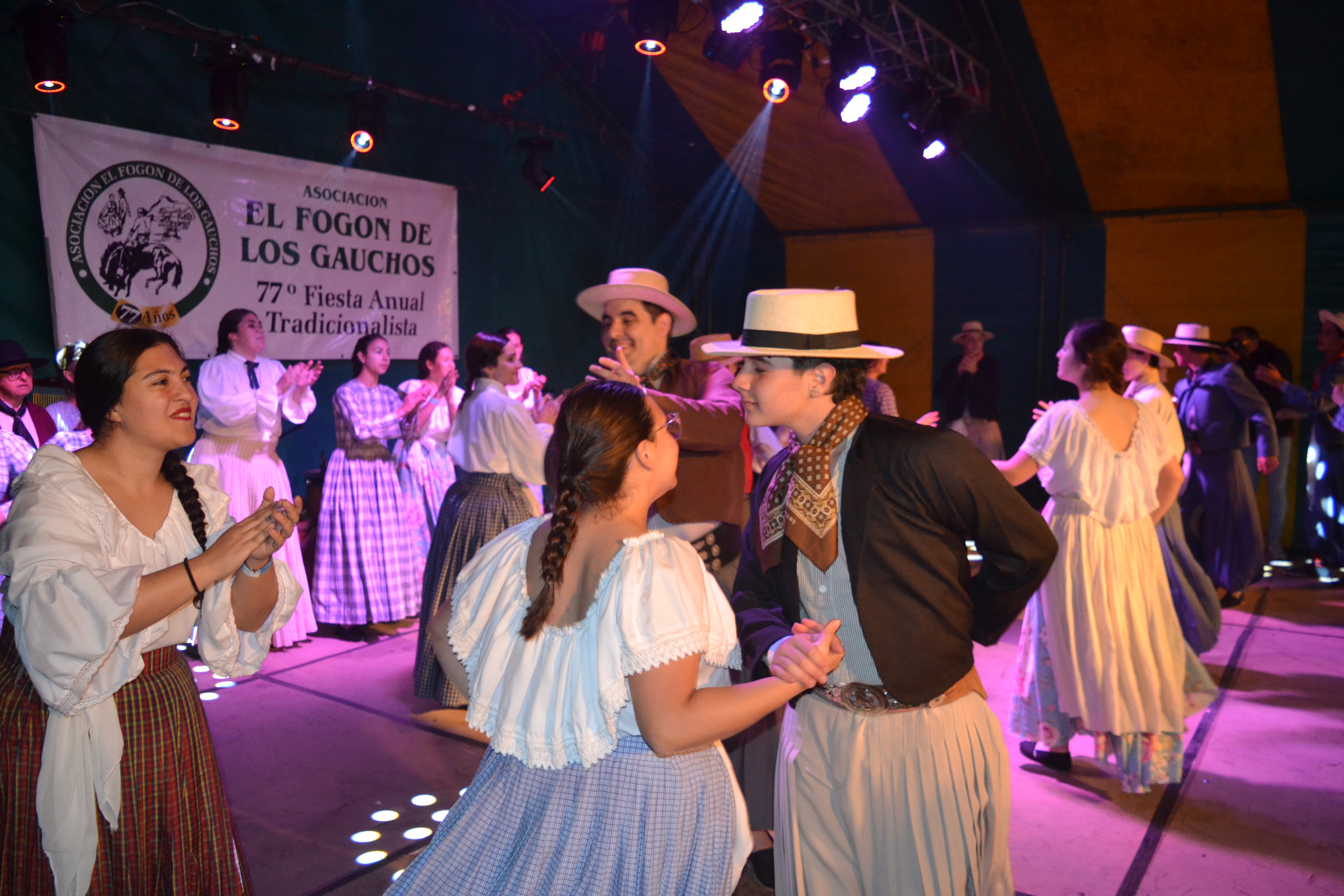 La 77° Fiesta Anual Tradicionalista de "El Fogón de los Gauchos" vivió el sábado una jornada cargada de emociones. Pese a que la lluvia obligó a suspender las actividades previstas en el campo de jineteadas durante la tarde, el espíritu festivo se trasladó a la noche y colmó el parque social con un gran marco de público.