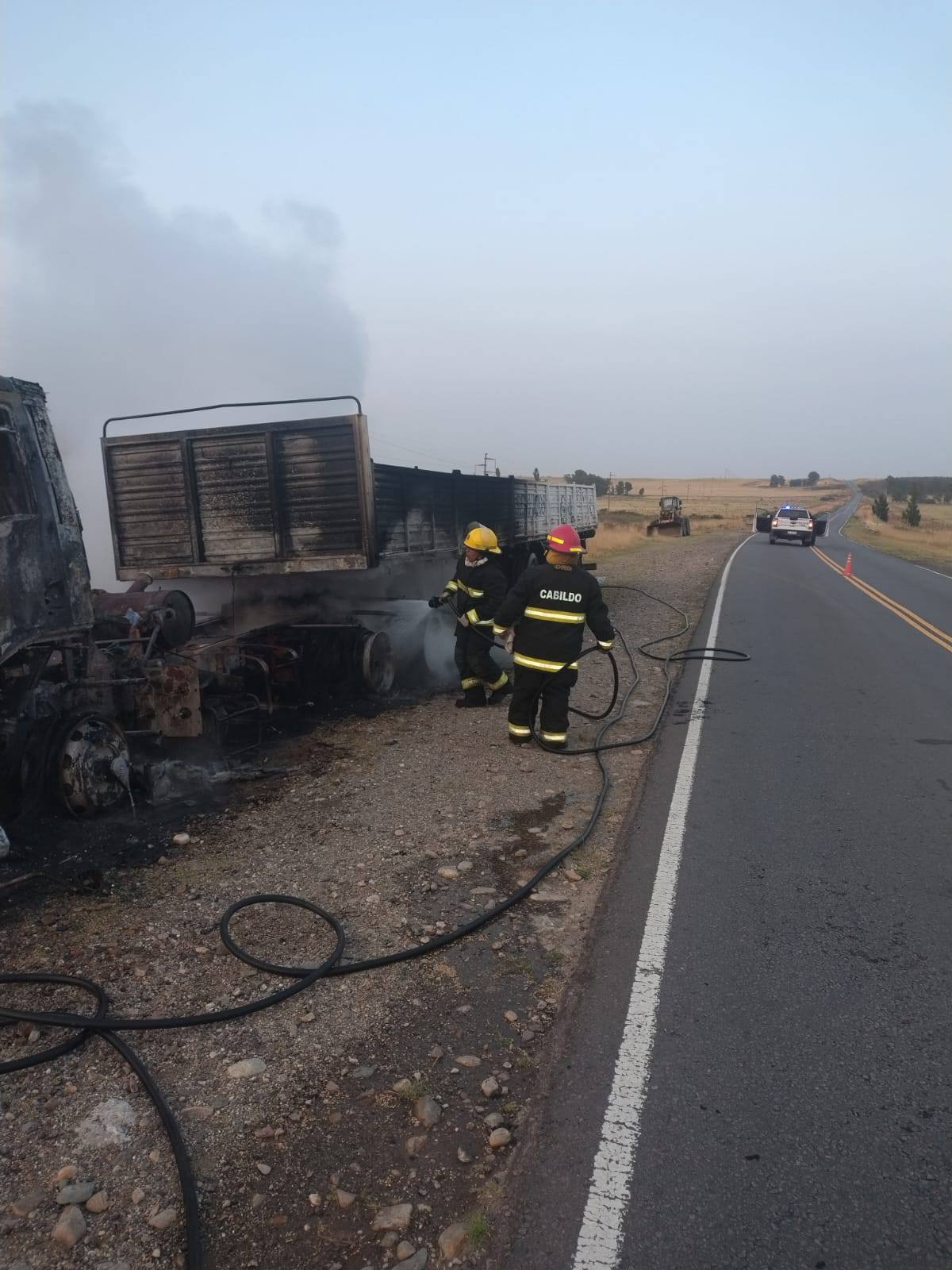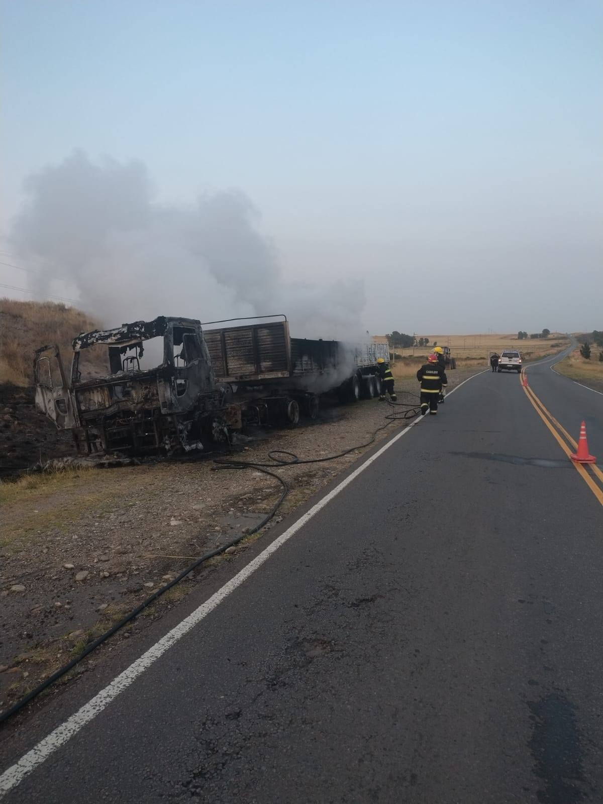 RUTA 51: Se incendió un camión y trabajaron dos dotaciones de bomberos de Cabildo