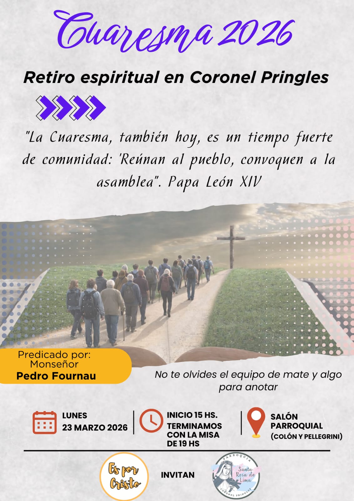 El lunes 23 de marzo, feriado puente, habrá de llevarse a cabo un retiro espiritual en nuestra ciudad.