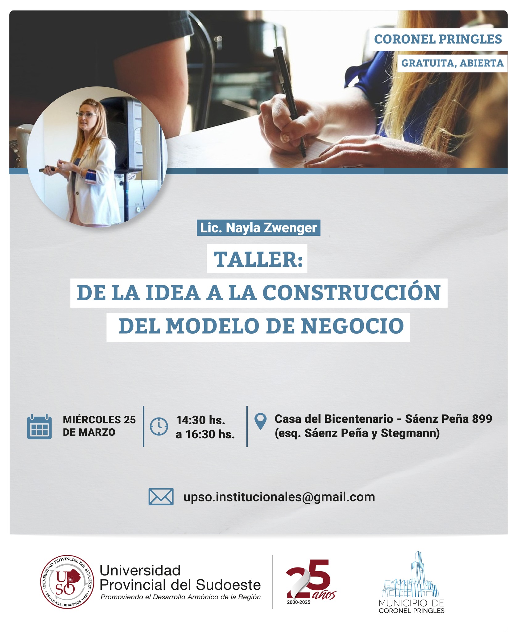 Según se informó, el objetivo del taller es ofrecer herramientas prácticas que permitan a los participantes repensar su modelo de negocio desde una mirada estratégica y coherente con sus objetivos personales. Durante el encuentro se trabajará en la clarificación de la propuesta de valor y en la identificación del público objetivo, con el fin de facilitar la captación de más y mejores clientes.