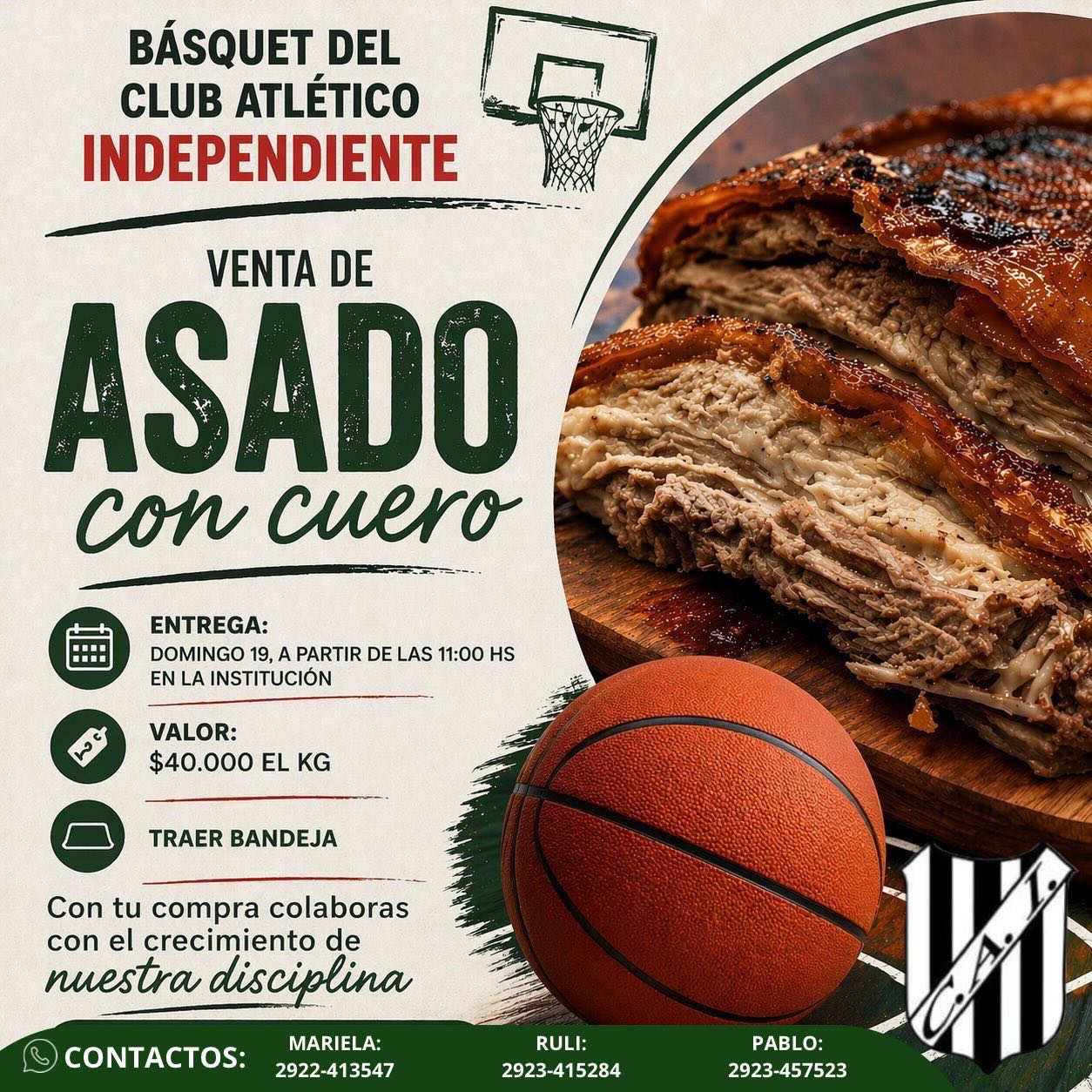 El venidero domingo 19 de abril los miembros del basquet del club Independiente organizan la venta de asado con cuero.