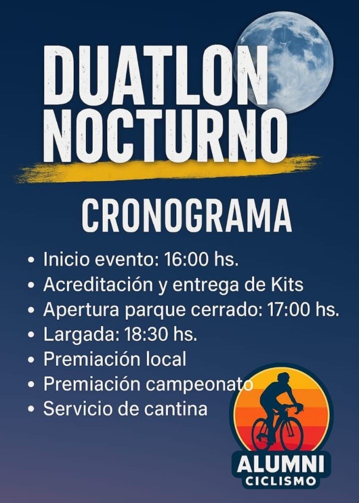Este sábado 8 de noviembre, Coronel Pringles vivirá una nueva edición del duatlón nocturno, una propuesta deportiva que combina resistencia, estrategia y espectáculo. Organizado por la Subcomisión de Ciclismo del Club Alumni, el evento forma parte del calendario anual del circuito regional, que ya tuvo su paso por Copetonas y Pehuen Co.