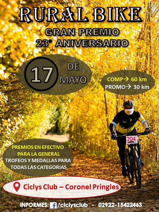 Tras el éxito de la edición anterior, donde Nerina Camiletti y Héctor Romero se coronaron campeones, el Ciclys Club de Coronel Pringles ya prepara sus senderos para festejar un nuevo año de trayectoria, será el próximo 17 de mayo.