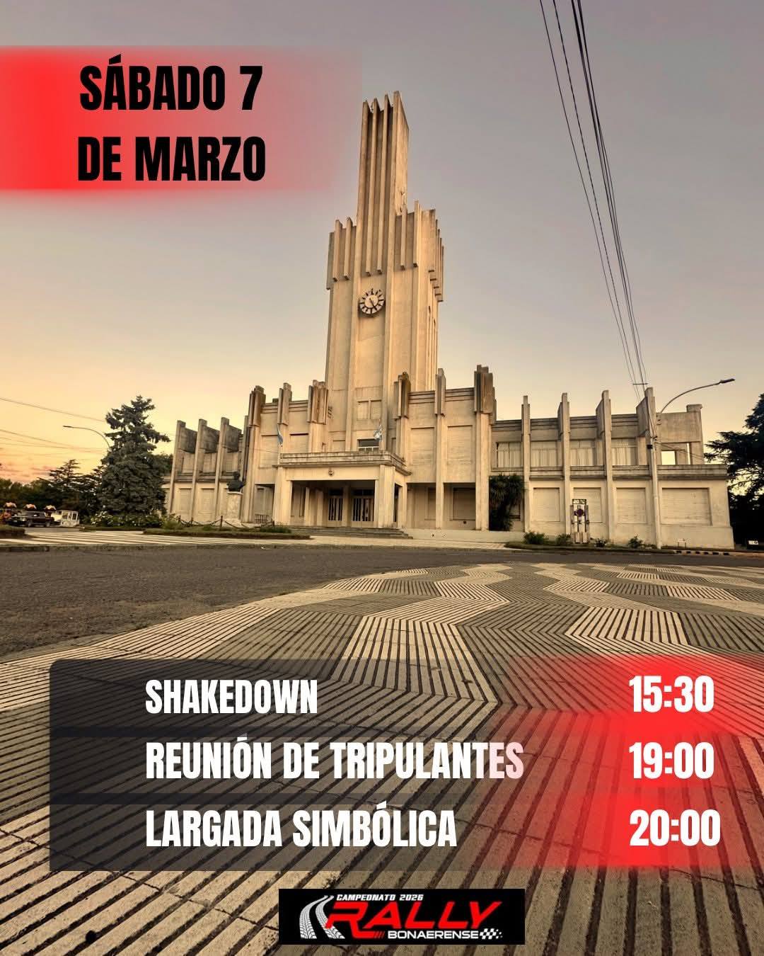 La jornada sabatina continuará con la reunión de tripulantes a las 19:00 horas, instancia en la que se repasarán aspectos organizativos y de seguridad. Finalmente, a las 20:00 se realizará la largada simbólica, frente al Palacio Municipal sobre calle Alem, un momento especial en el que los protagonistas se presentan ante el público y se da inicio formal al evento.