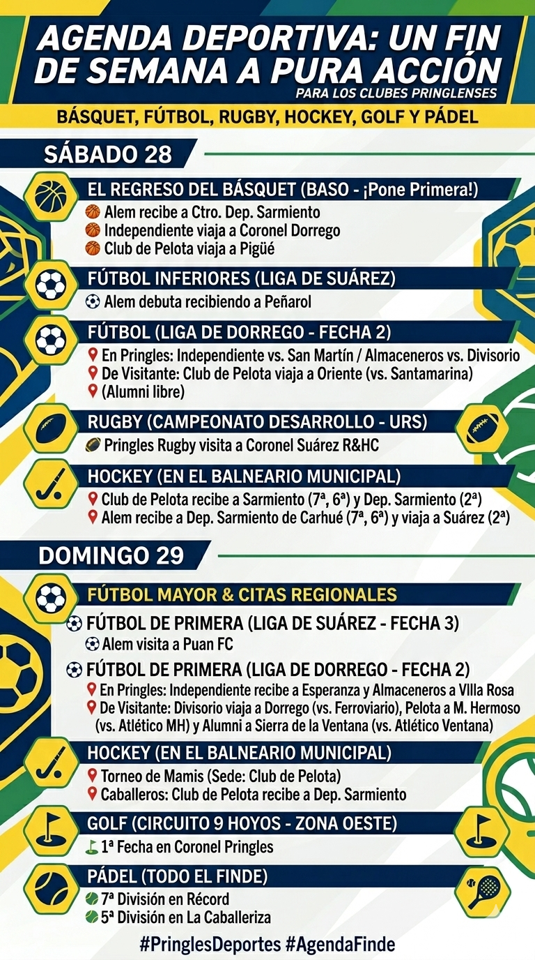 El mapa deportivo de este fin de semana propone un abanico de disciplinas para todos los gustos. Desde el debut de las inferiores hasta el regreso del certamen de la BASO, aquí te detallamos día por día y disciplina por disciplina los cruces más importantes.