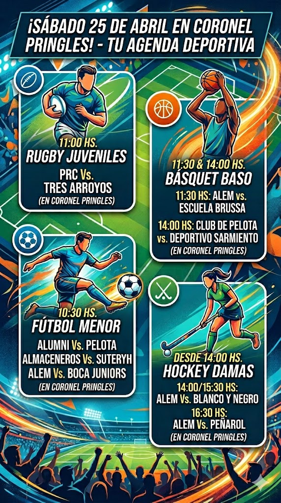 Coronel Pringles se alista para vivir dos jornadas intensas donde el deporte local y regional tomará el protagonismo absoluto. Con una oferta que abarca desde categorías formativas hasta las primeras divisiones, los clubes locales se preparan para recibir a delegaciones de toda la zona en lo que promete ser un fin de semana de gran convocatoria de público.