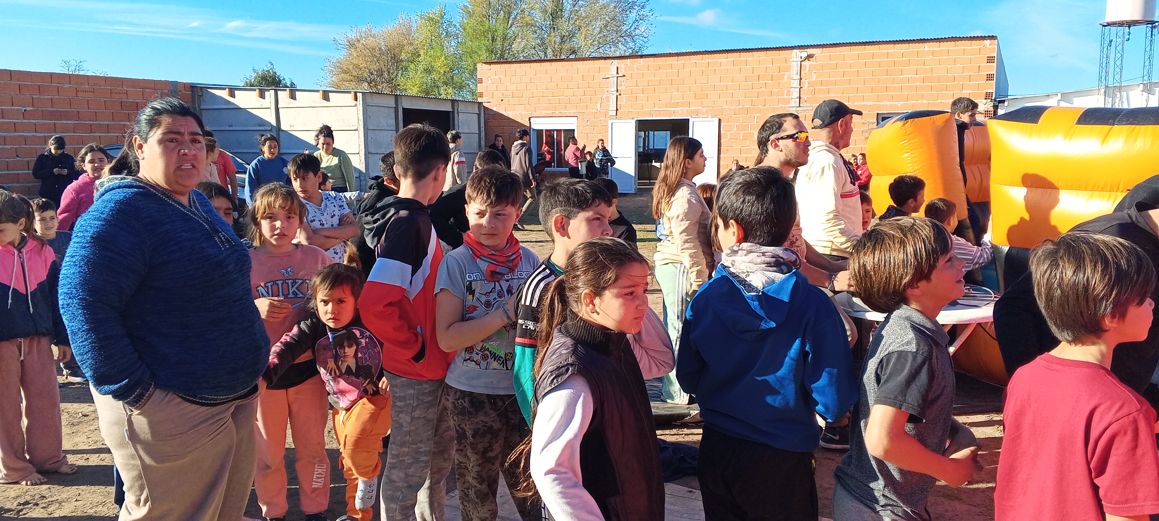 Las actividades se desarrollaron tanto en la entrada del predio, donde se instalaron los inflables, como en la cancha con los juegos deportivos, y en la sede, donde se compartió chocolate, bizcochos y tortas. "La idea era que los chicos puedan comer algo y disfrutar la tarde también", explicó Orquín.