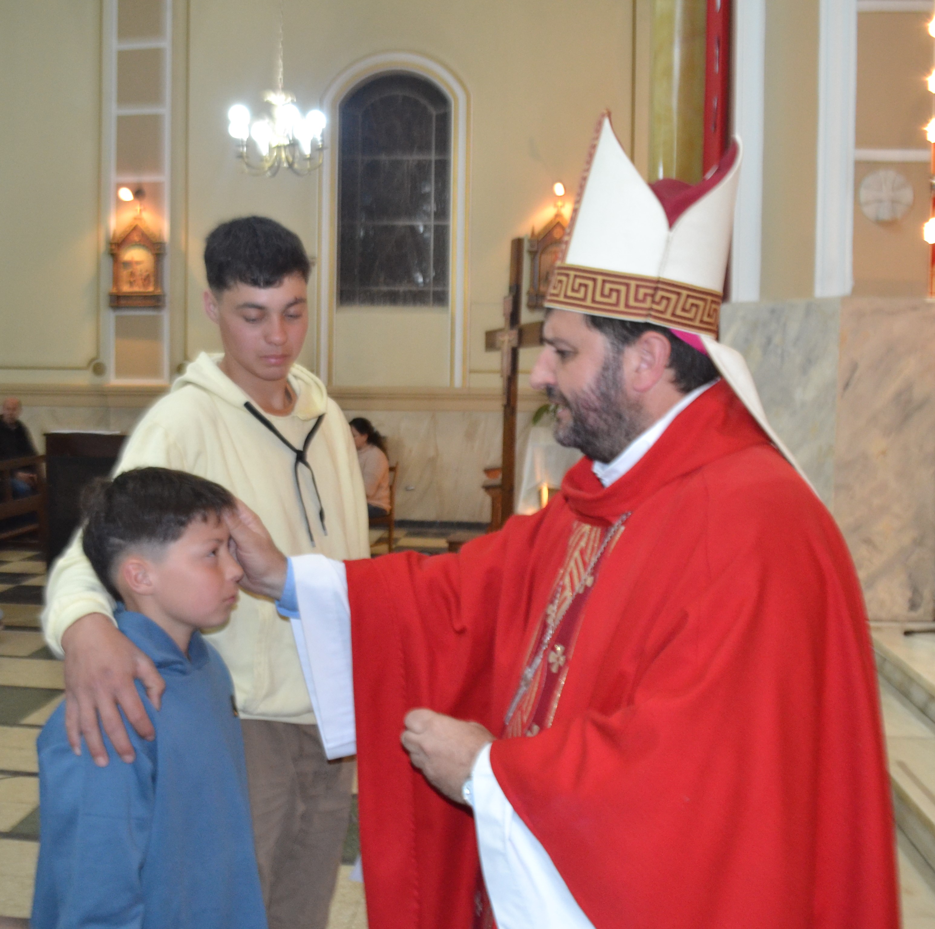 El viernes 26 de septiembre, en la Misa de las 19 horas, en la Parroquia Santa Rosa de Lima, el Obispo Auxiliar de Bahía Blanca, Pedro Fournau, administró el Sacramento de la Confirmación a niños y jóvenes de nuestra comunidad. Fue la segunda jornada de confirmaciones en la ciudad, ya que se había realizado otra ceremonia en la noche del jueves.