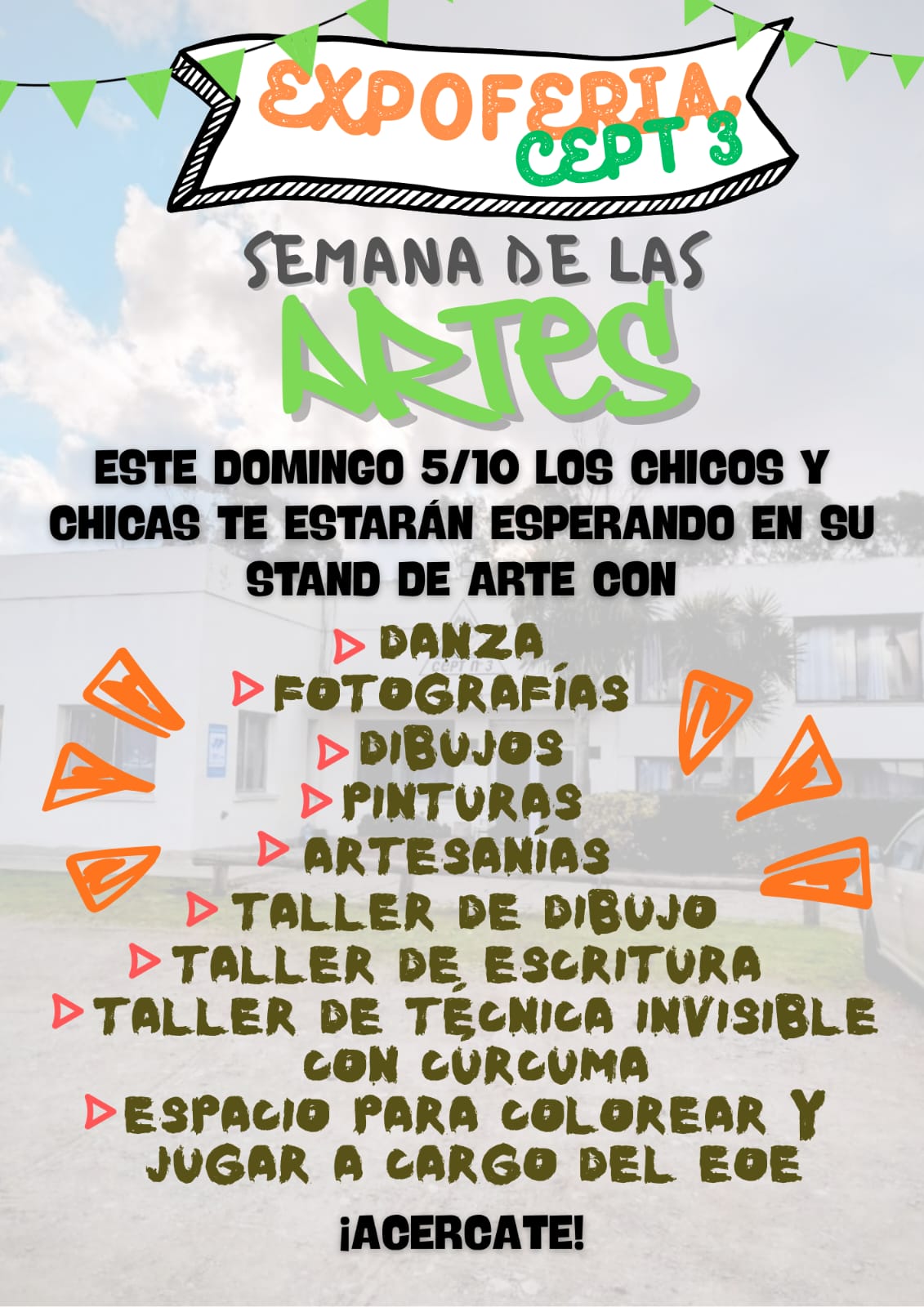 La propuesta incluye feria de productores y artesanos, exposición de proyectos institucionales, juegos y espacios de arte para chicos y chicas, además de talleres de dibujo, escritura, técnicas artísticas y actividades recreativas. También habrá sorteos, un stand con productos elaborados en el establecimiento educativo y delicias caseras.