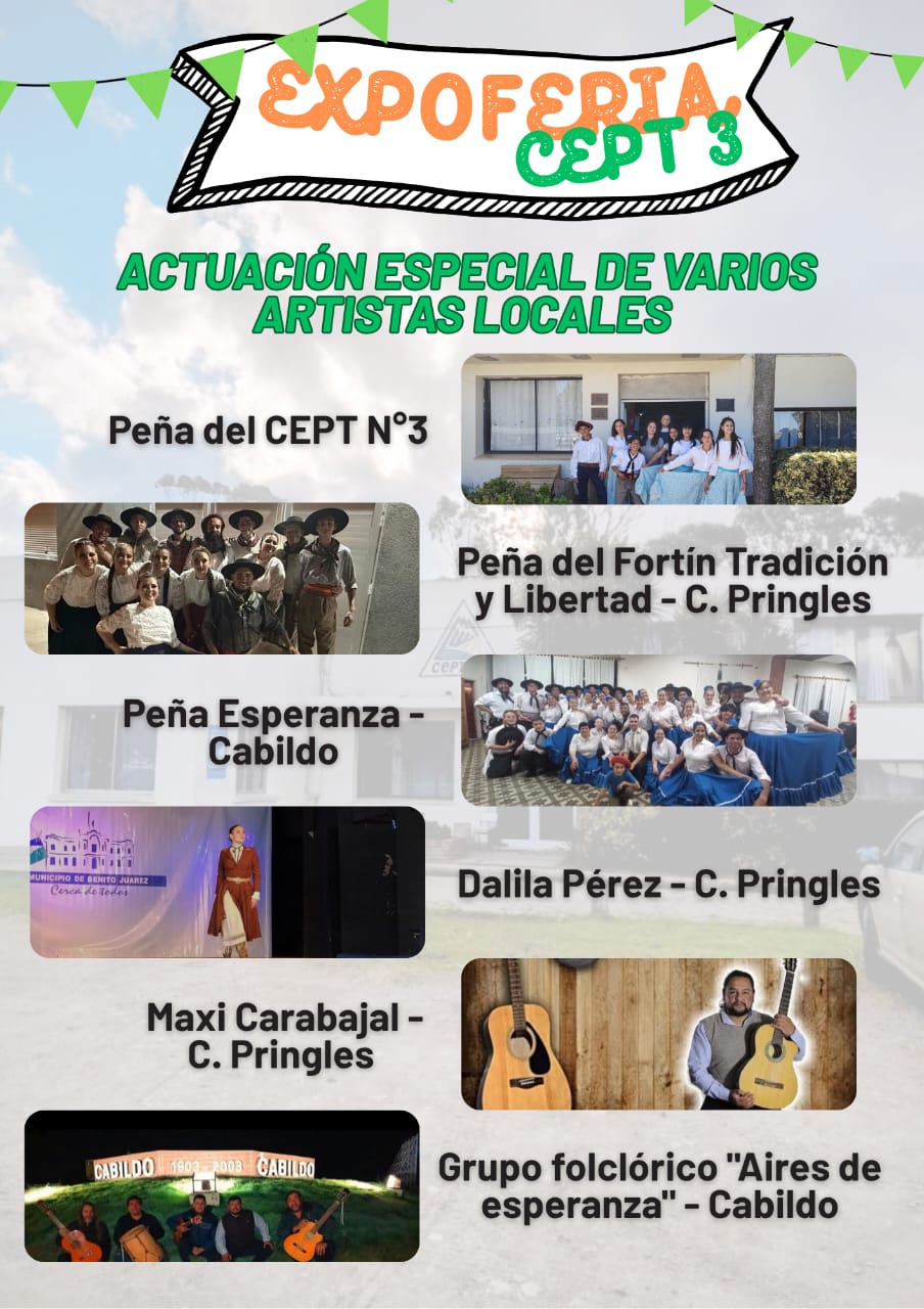 Uno de los grandes atractivos será la programación artística, que contará con la participación de la Peña del CEP Nº3, la Peña del Fortín Tradición y Libertad de Coronel Pringles, la Peña Esperanza de Cabildo, Dalila Pérez con su peña local, el Grupo Folclórico Aires de Esperanza (Cabildo) y la presentación especial de Maxi Carabajal, ex alumno de la institución, quien compartirá su repertorio musical con el público.
