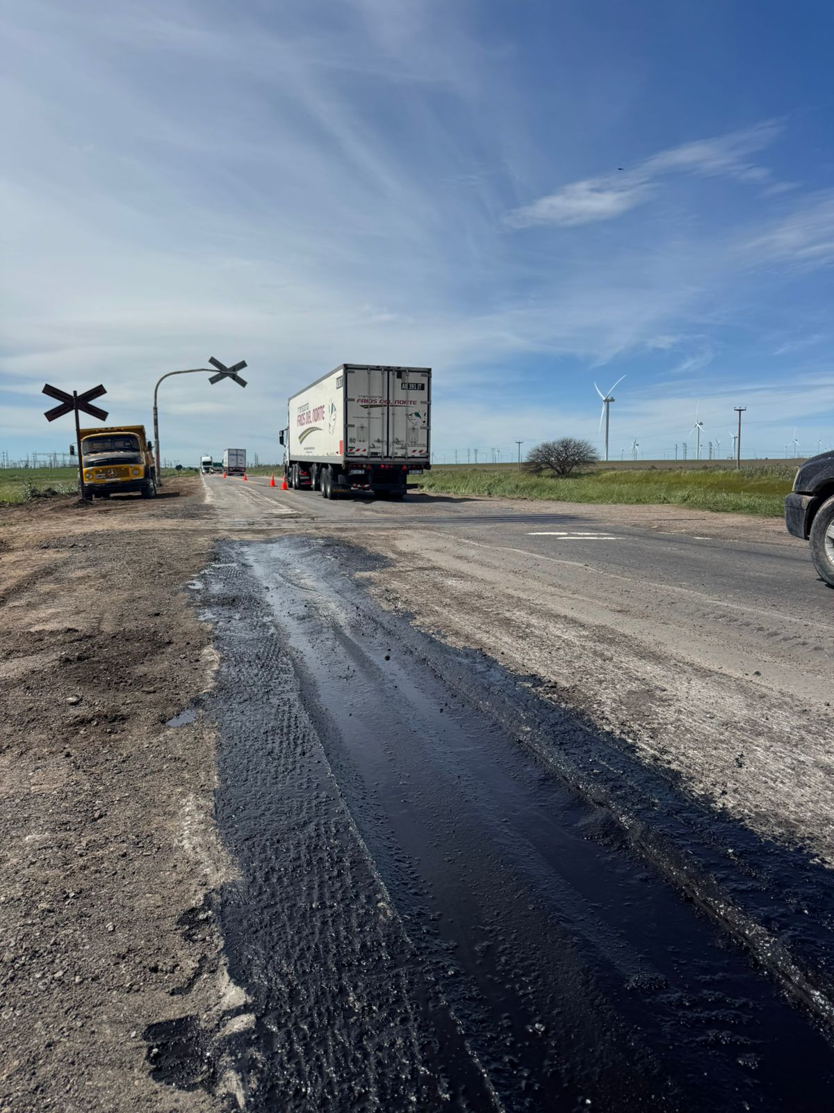 La Dirección Provincial de Vialidad realiza tareas de nivelación y fresado de la cinta asfáltica en el cruce de las vías del ferrocarril, con el objetivo de mejorar la seguridad y transitabilidad en la zona.