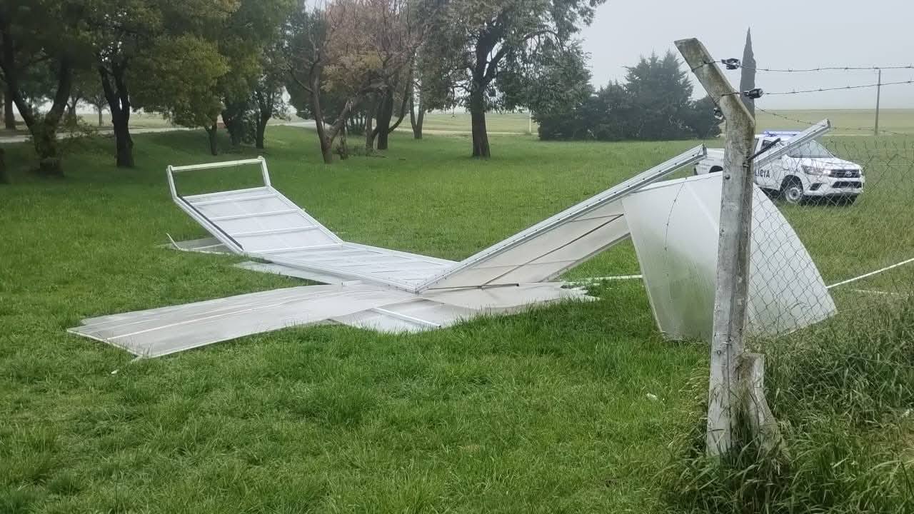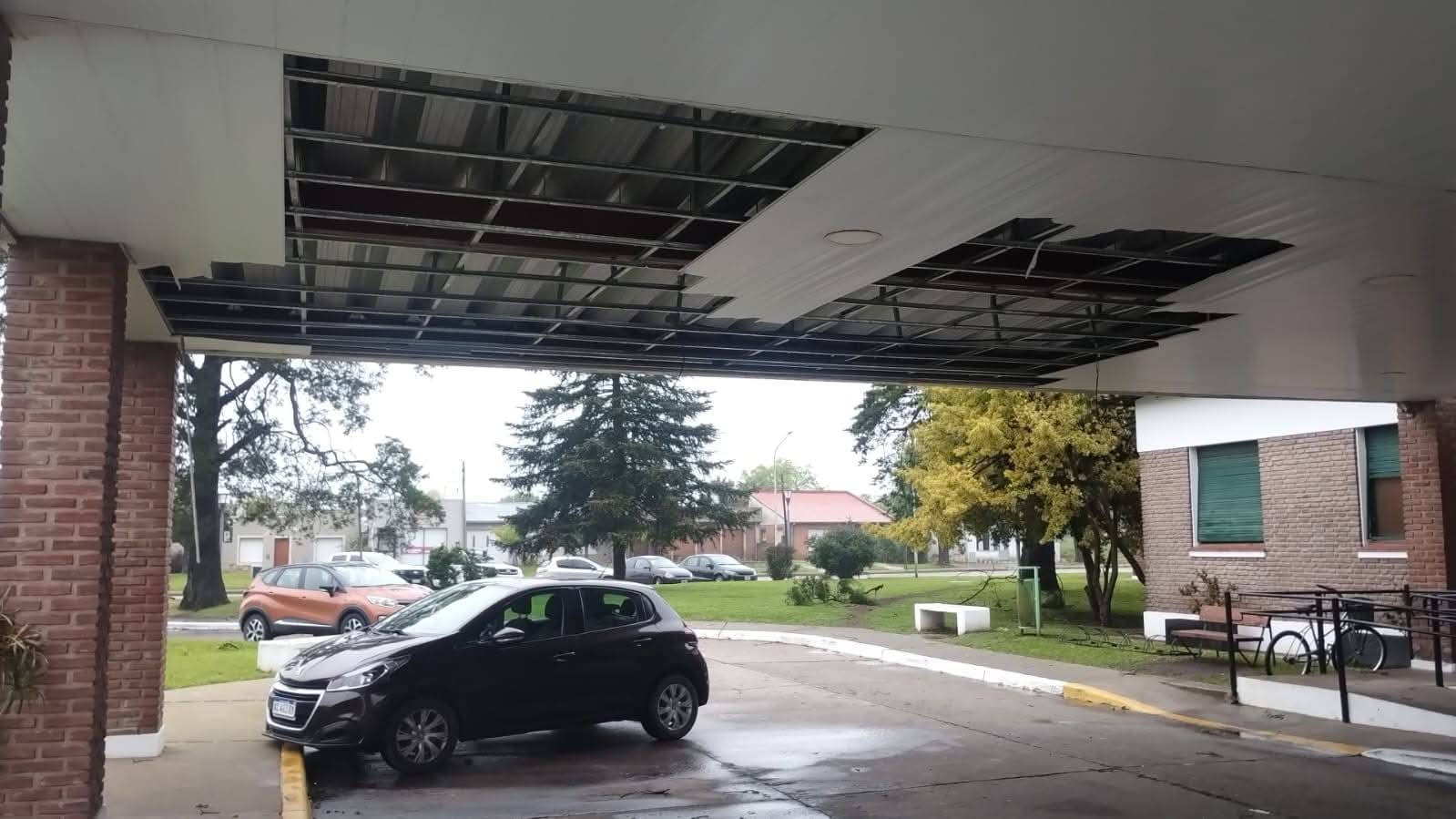 Por caso, la intensidad del viento (estaban previstas ráfagas de hasta 90 kilómetros por hora) provocaron la voladura del techo del hospital Municipal Eva Perón de Benito Juárez, así como también daños en la pileta municipal y la caída de árboles y postes de luz.
