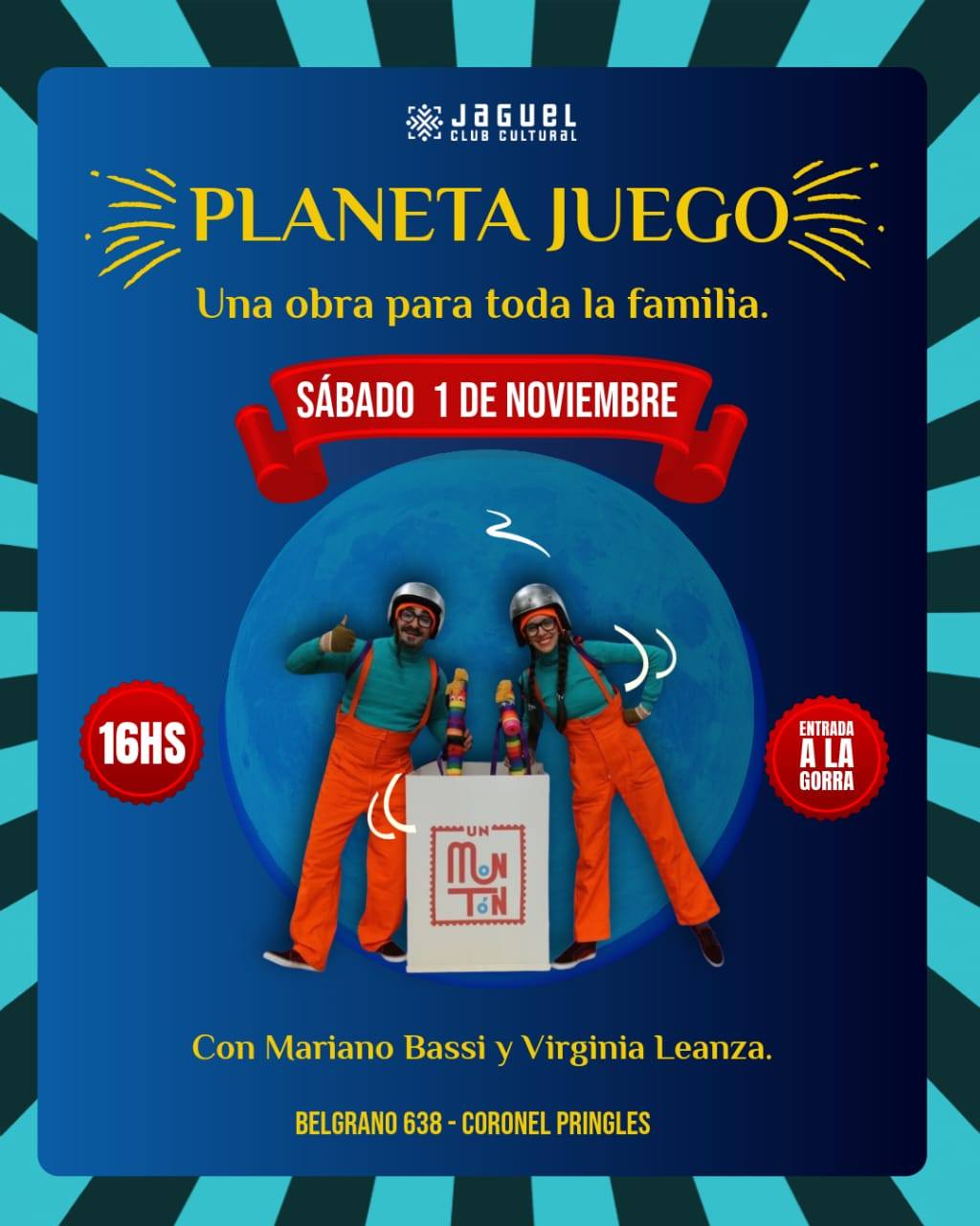 Ambas funciones se desarrollarán en Jagüel Club Cultural, ubicado en Belgrano 638, en el corazón de Coronel Pringles.