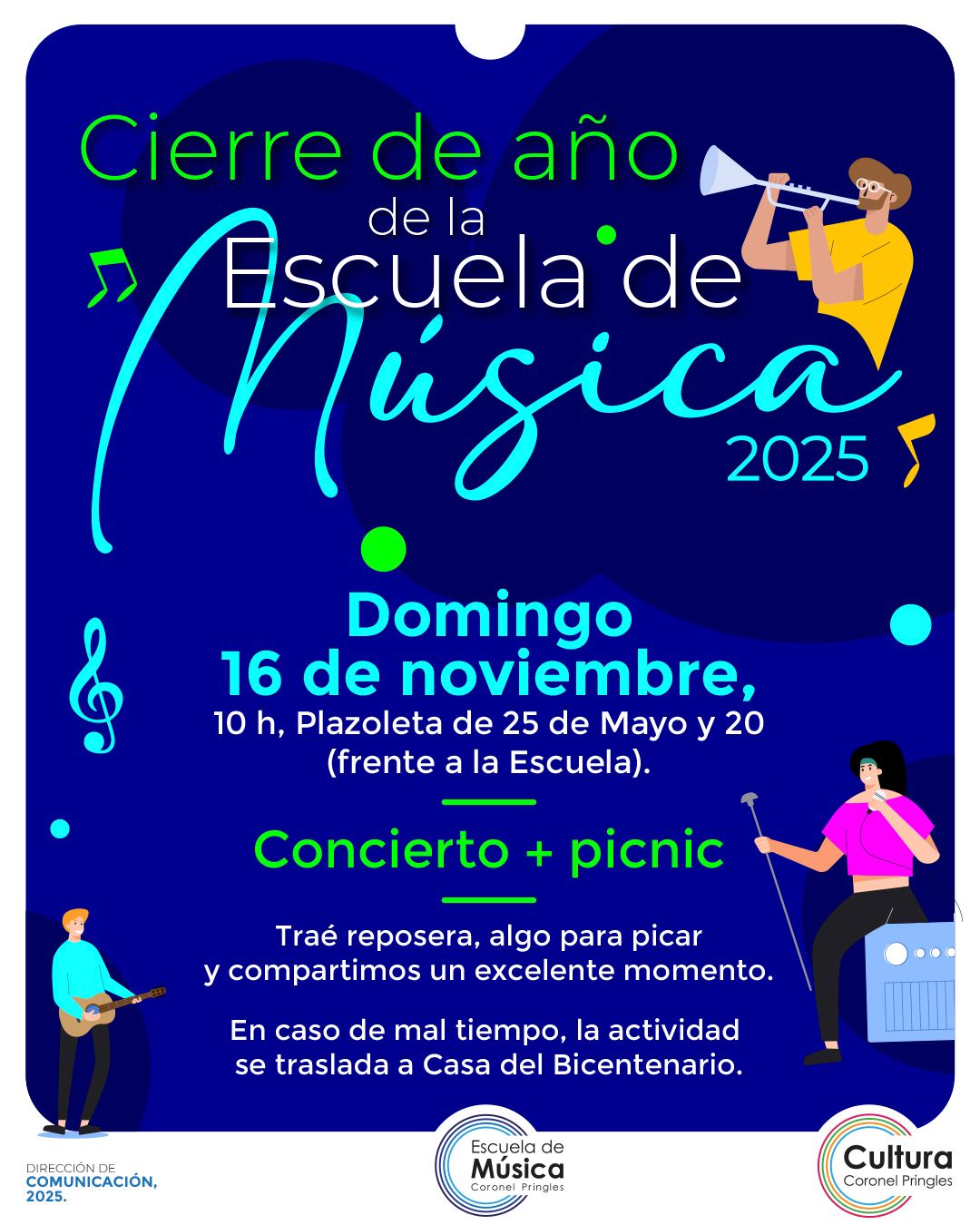 Domingo 16 de noviembre, 10 hs, Escuela Municipal de Música (con picnic).