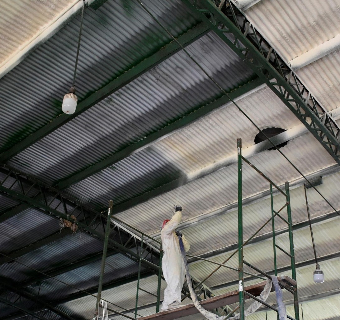 Durante esta semana comenzó la colocación de espuma proyectada de poliuretano en el techo de la nave de clasificación. Se trata de un material aislante, térmico y acústico que permitirá mantener un clima interno adecuado tanto en invierno como en verano.