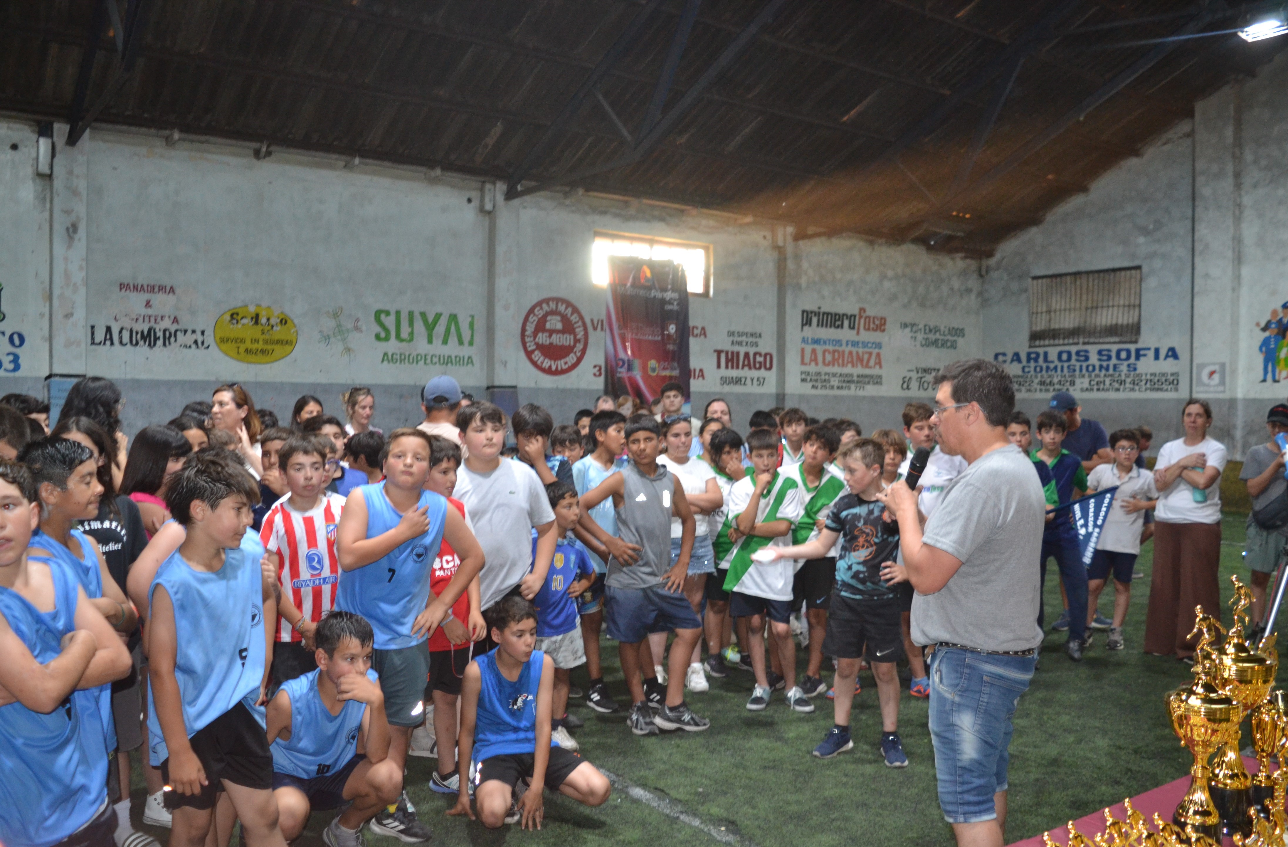 Luego, el Locutor Nacional Leonardo Lastre, también agradeció a los establecimientos educativos que participaron del campeonato y a sus directivos y profesores por el compromiso asumido. Acto seguido, fueron pasando cada uno de los equipos a recibir su premio, desde el último al primero porque todos los niños, se llevaron un trofeo y los directivos de las escuelas un voucher válido por una lata de pintura para cada escuela.