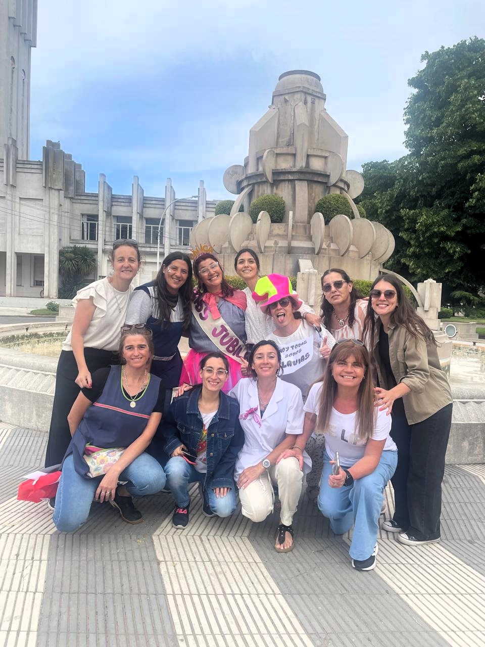 La jornada incluyó la proyección de un video, palabras de la directora y el reconocimiento de toda la comunidad educativa. Potis no estuvo sola: familiares, excompañeras y docentes jubiladas la acompañaron en este cierre que culminó con una caravana hacia el centro de la ciudad, finalizando en la Plaza Juan Pascual Pringles. Capa, trono, bombos y un cartel de “Jubilada” agregaron humor y calidez a la celebración.