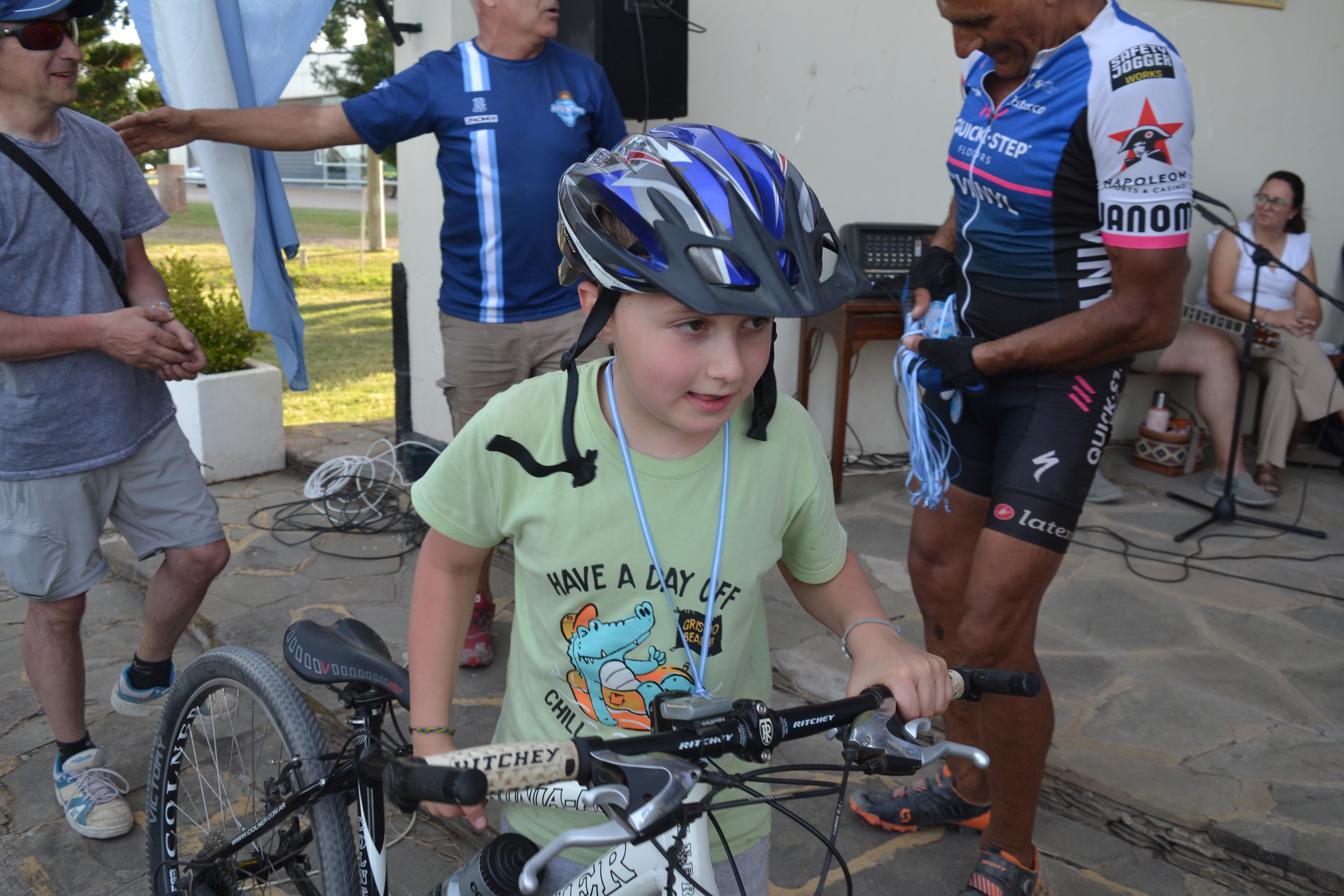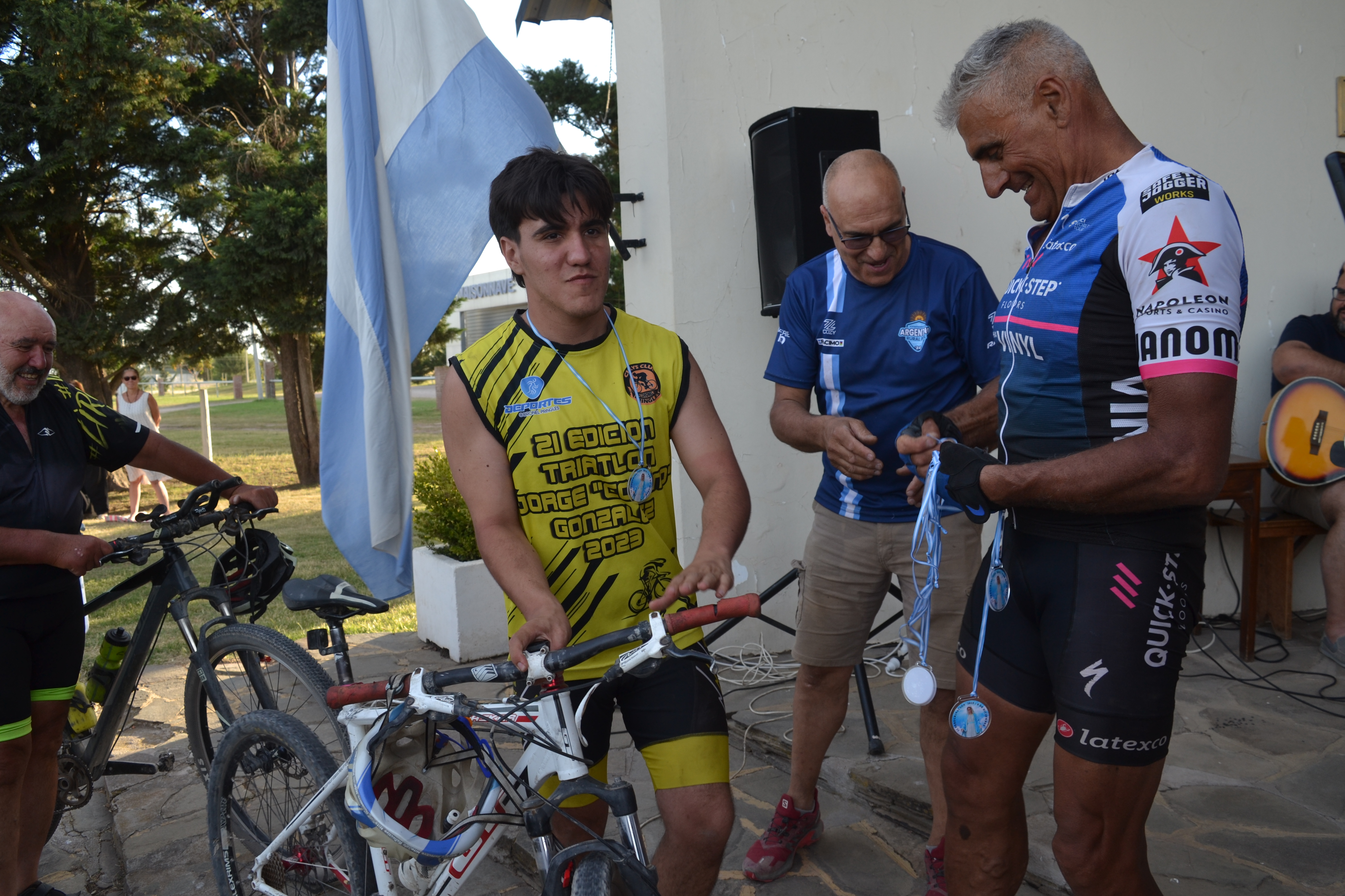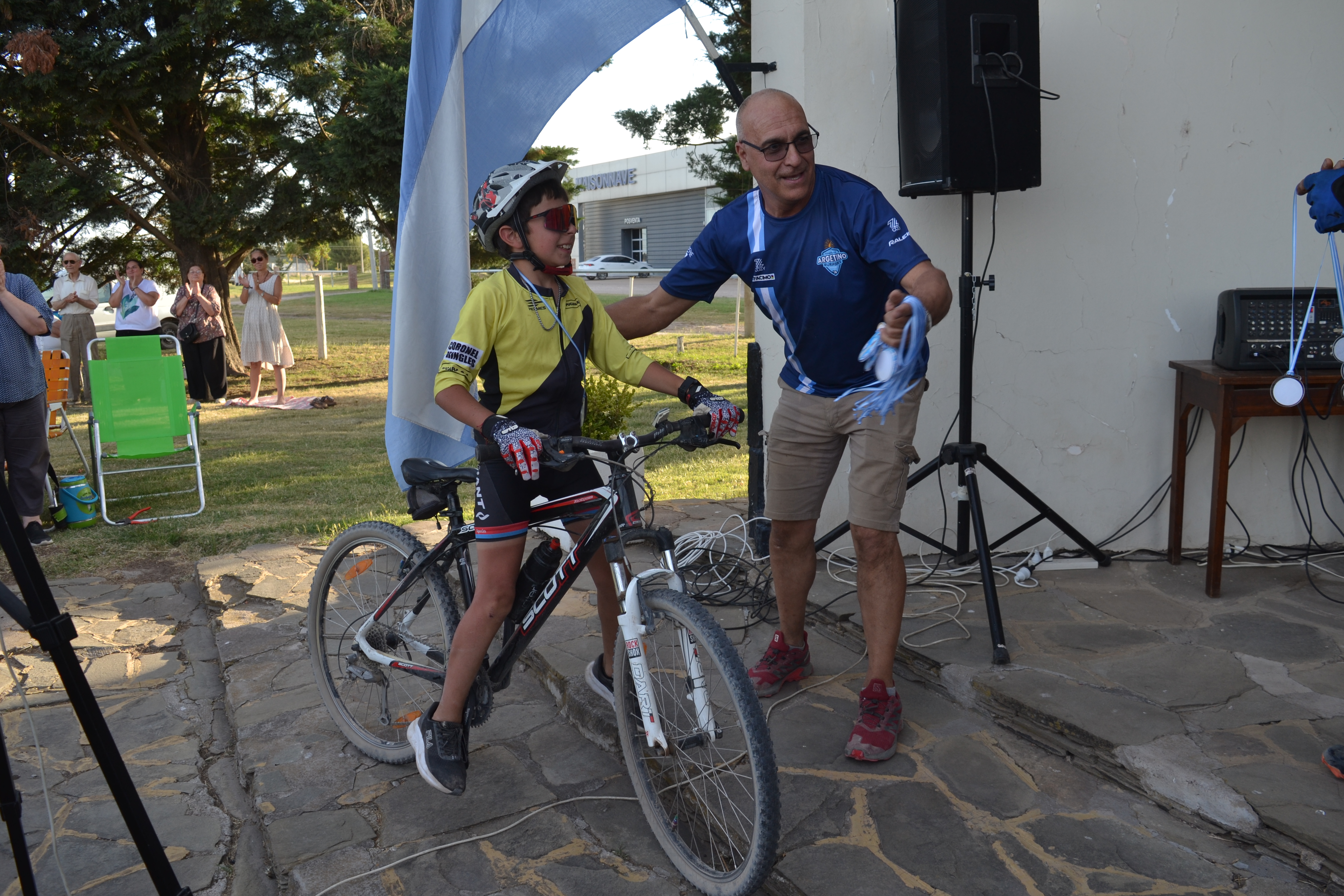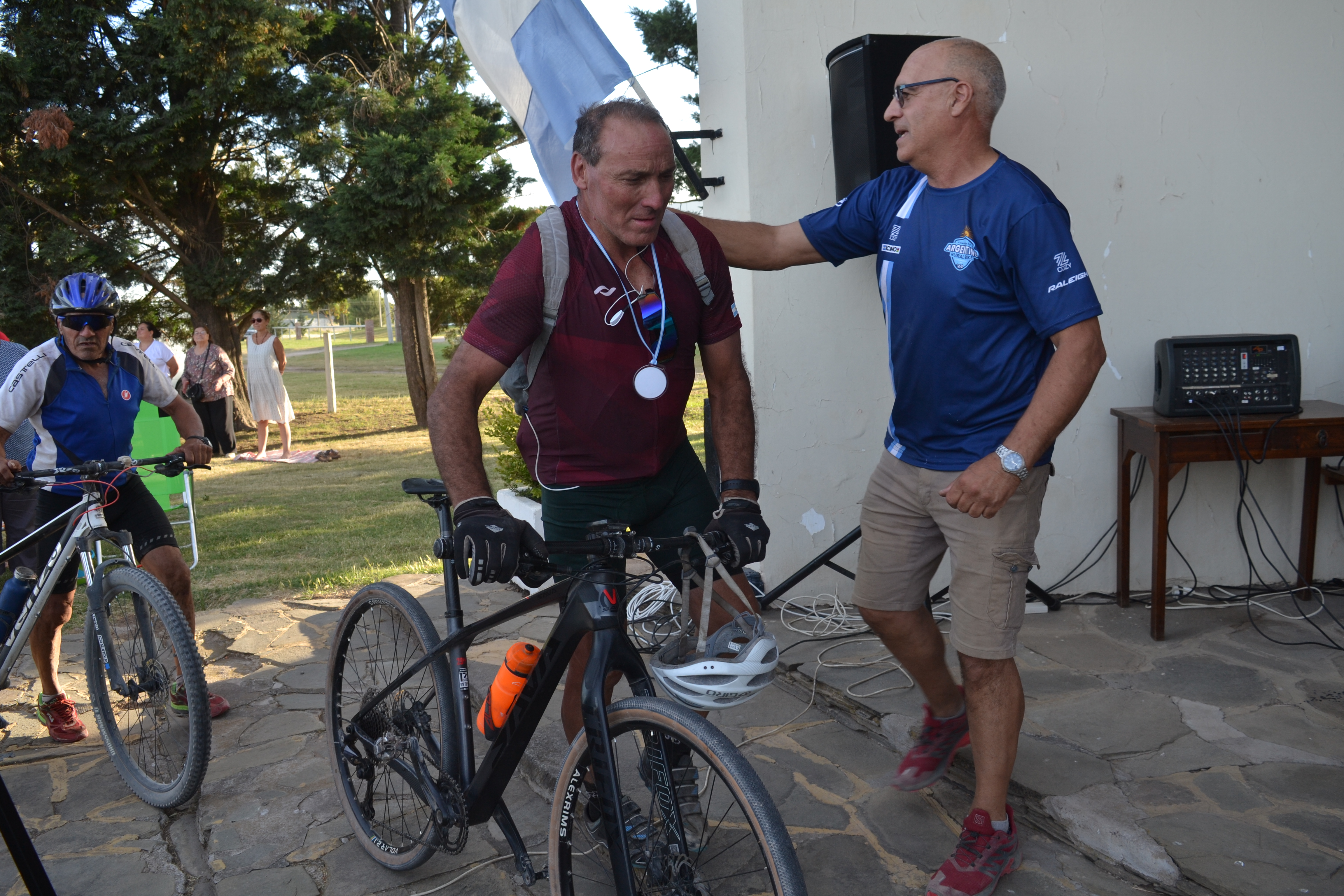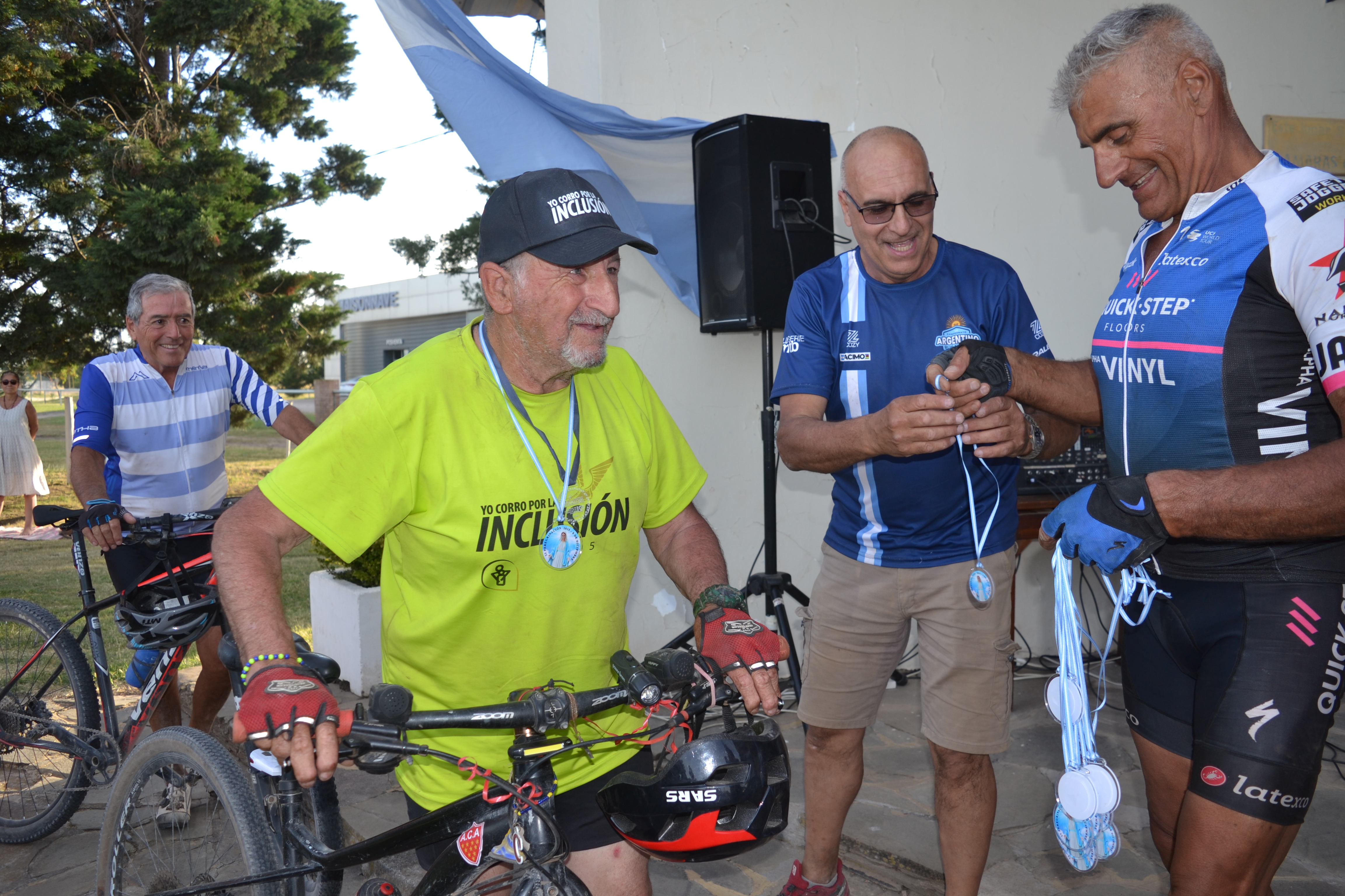 Previo a la ceremonia, Mandrini expresó emocionado: "Hubo mucho viento durante el recorrido y muchos colchones de tierra, más duro que nunca y durísimo el calor, llegamos con el tiempo justo, pero llegamos". Luego, en diálogo con Multimedio Pringles, amplió: "Aunque se hizo pesadísimo al mediodía, logramos completar la peregrinación número 23. Salimos 30 ciclistas y se sumaron 5 más, así que finalizaron 35. Sólo tuvimos una caída leve y todos pudieron terminar", destacó. También agradeció a los participantes, a Carlos Llano "?donante de las medallas"?, al cura párroco por el recibimiento y a Pablo Stefano, quien acompañó la travesía mientras su hijo de 11 años la completó en bicicleta.