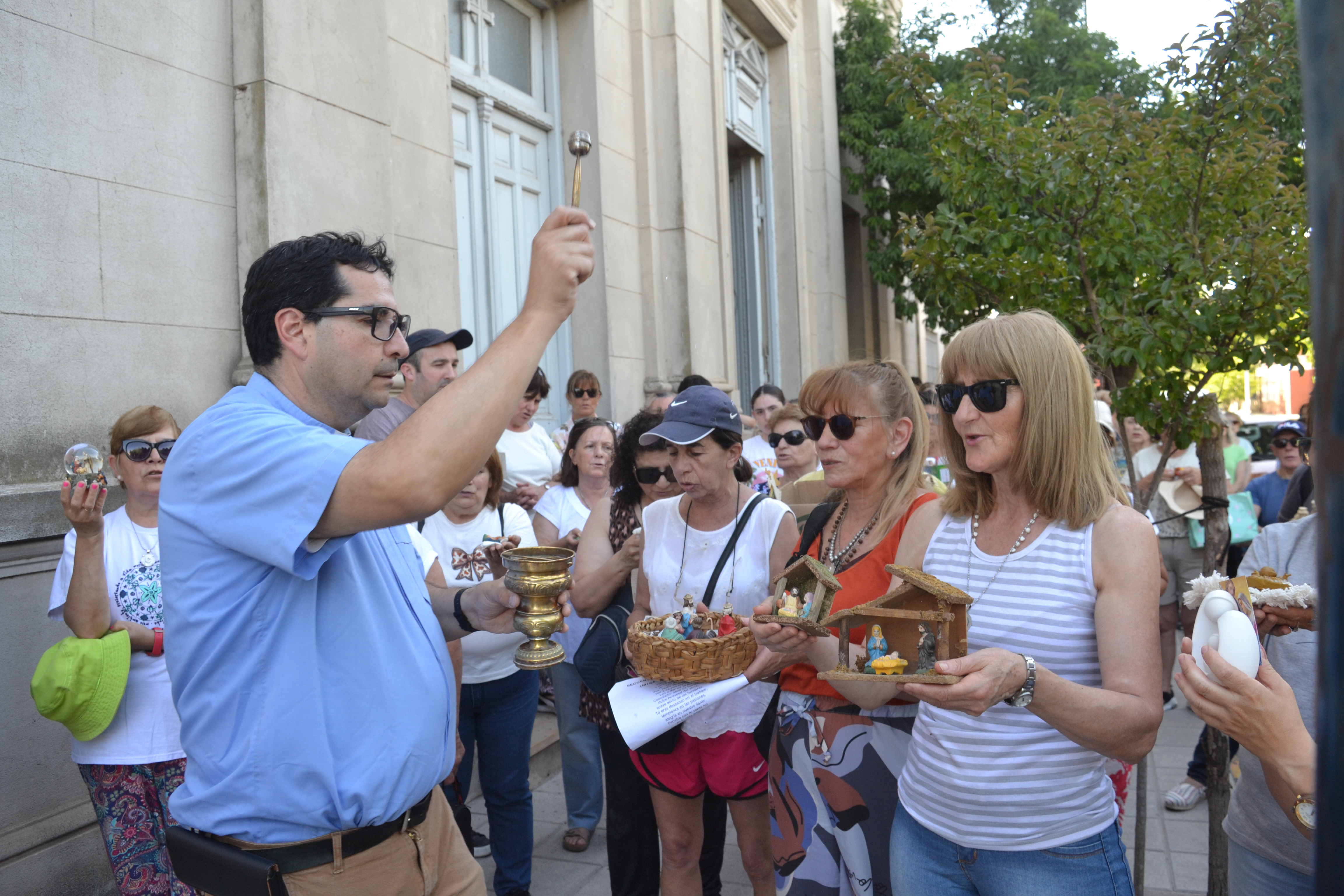 Por la tarde, desde las 17 horas, los fieles se congregaron nuevamente frente al templo para la bendición de pesebres, una ceremonia que marca simbólicamente el inicio de la preparación navideña en muchos hogares. En esta oportunidad se bendijo también el pesebre instalado en la Plaza Pringles, además de los acercados por los vecinos.