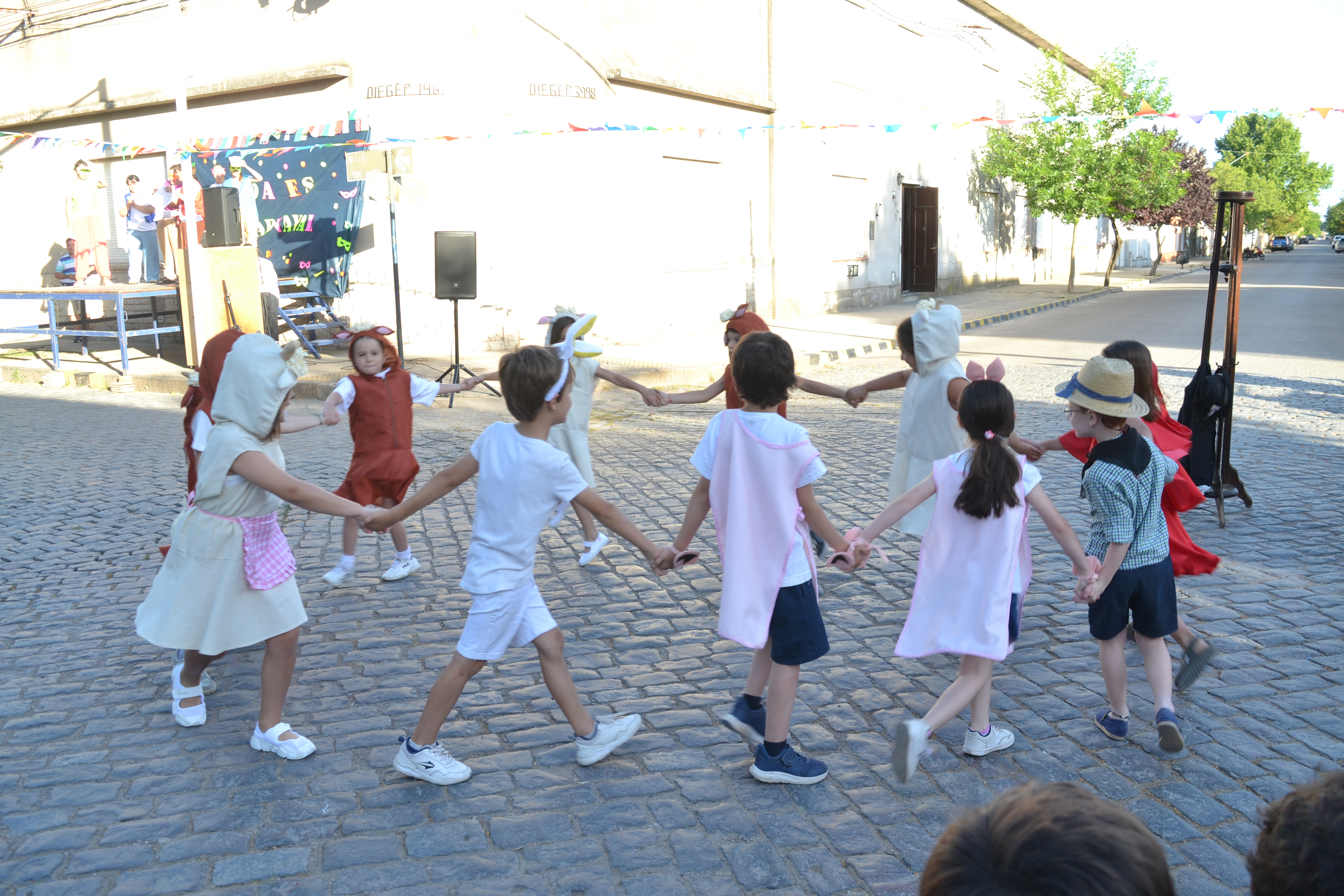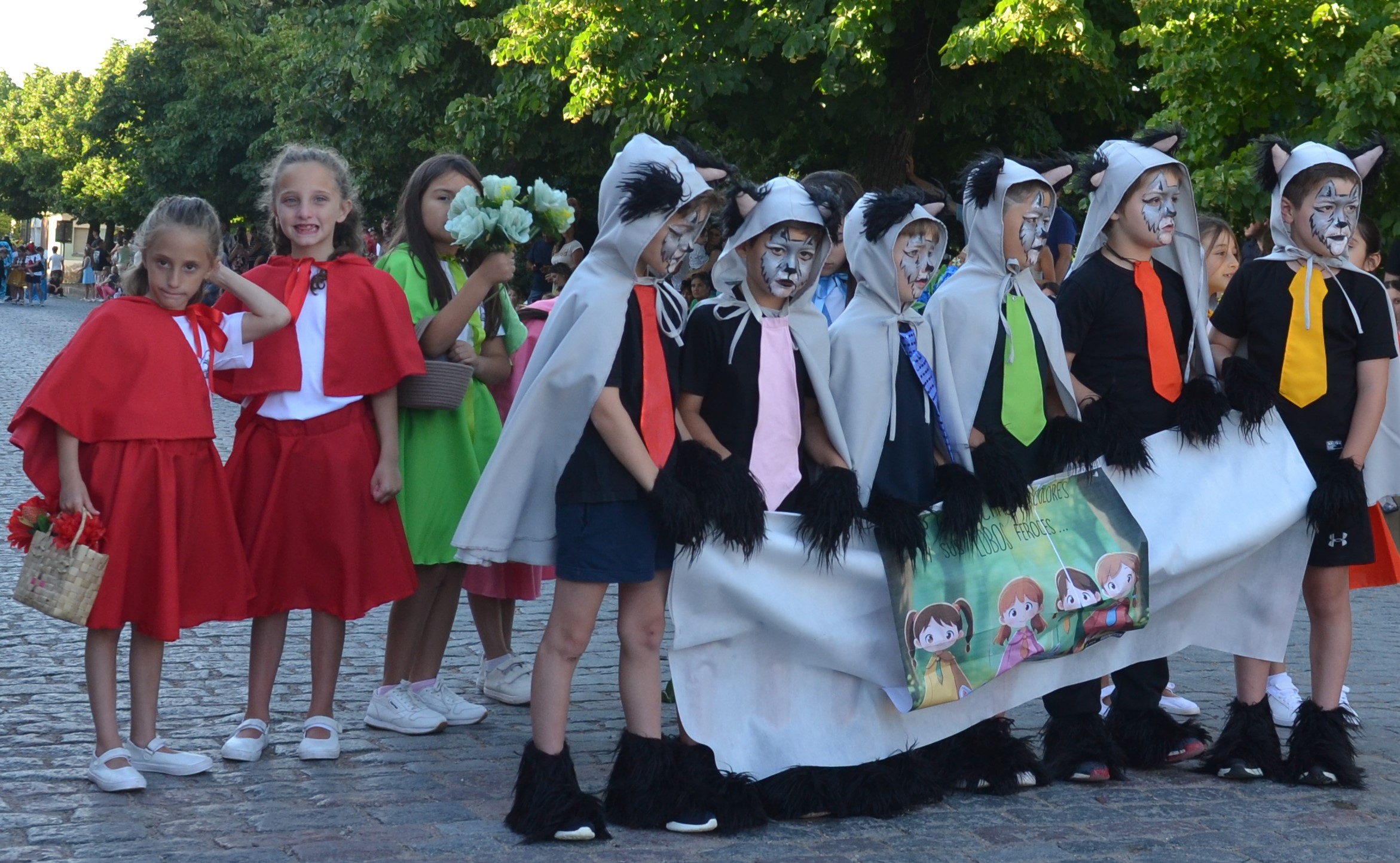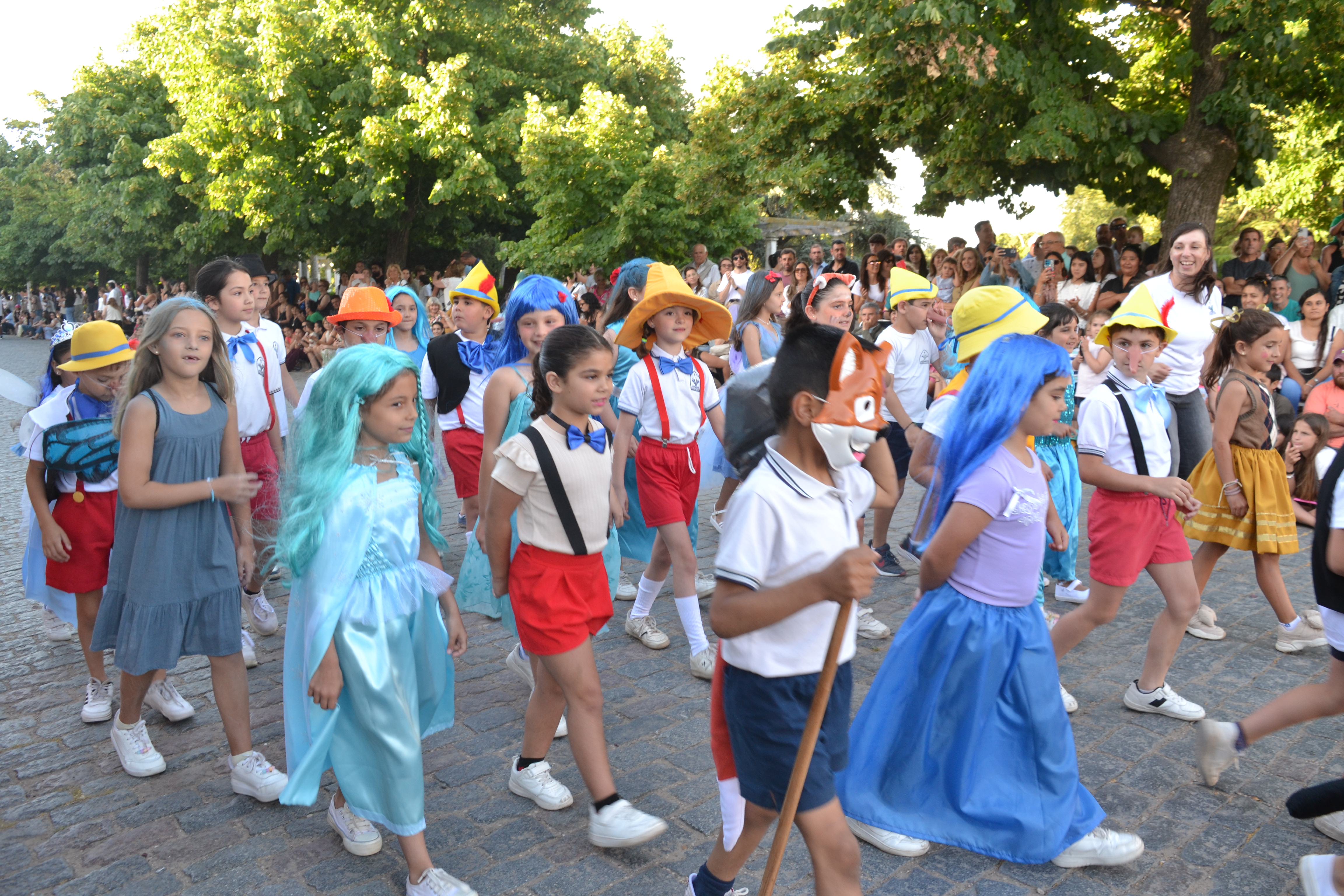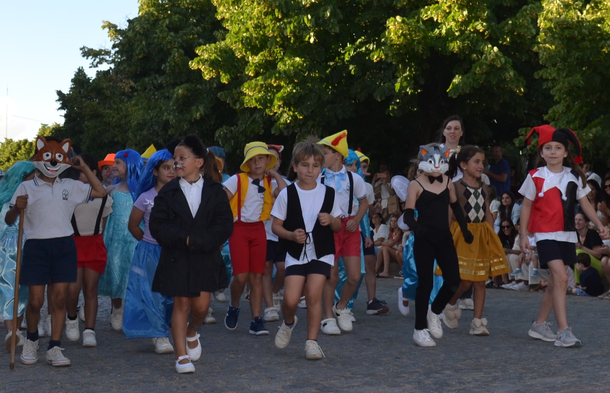 Luego, uno a uno, los distintos grupos de Primaria fueron avanzando por la calle convertida en pasarela, dando vida a personajes de los cuentos trabajados durante el año. Los más chicos recrearon historias clásicas como "Los Tres Cerditos", Pinocho y Caperucita Roja, aportando frescura, color y espontaneidad al desfile. Otros cursos se inspiraron en relatos como Aladino, sumando música y vestuarios que captaron la atención del público.