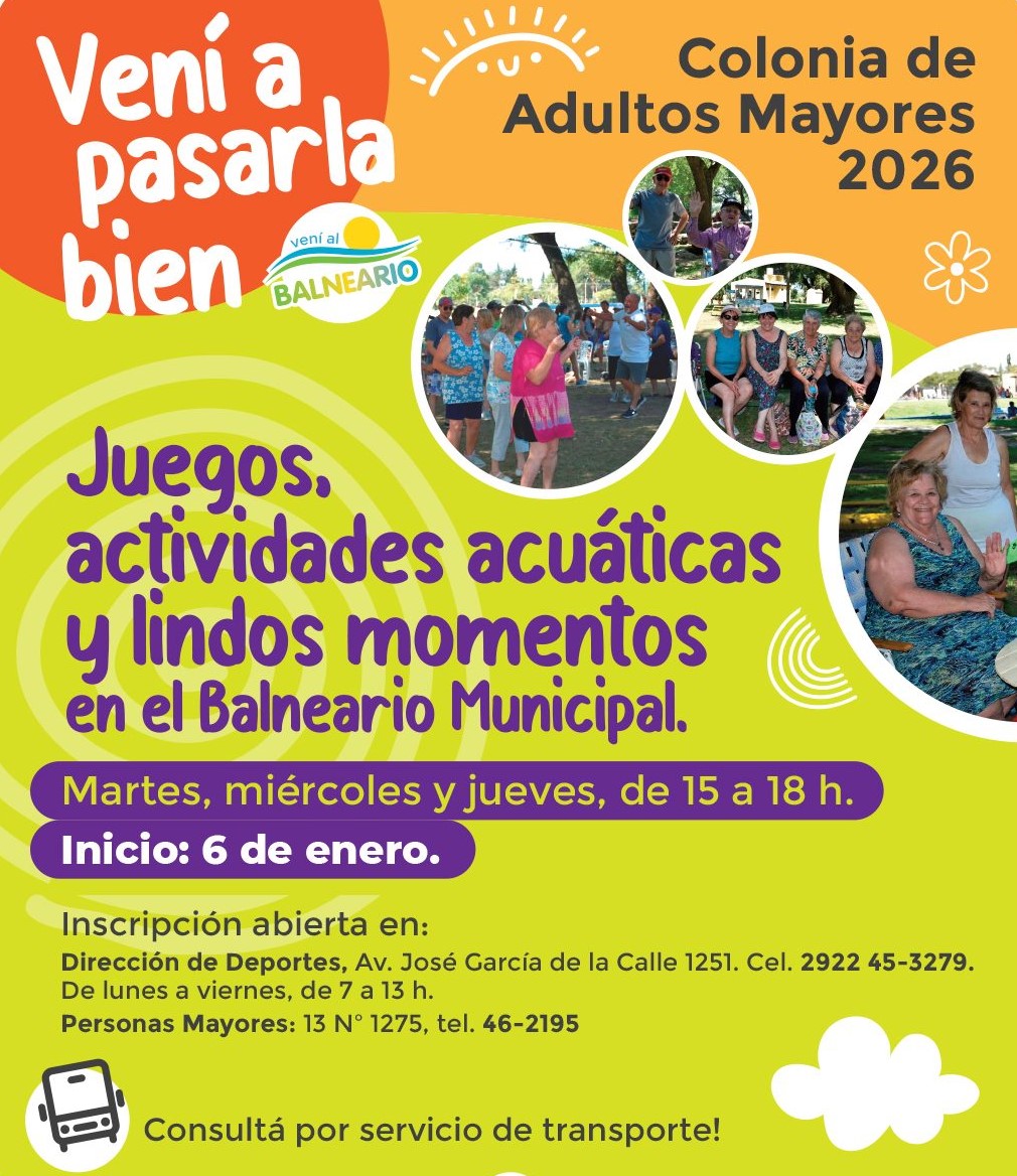 Con actividades recreativas, propuestas acuáticas y nuevas iniciativas pensadas para el disfrute y la integración, la tradicional colonia municipal volverá a funcionar en el Balneario, con inscripción abierta para todos los adultos mayores de la ciudad y traslado incluido para quienes lo necesiten.