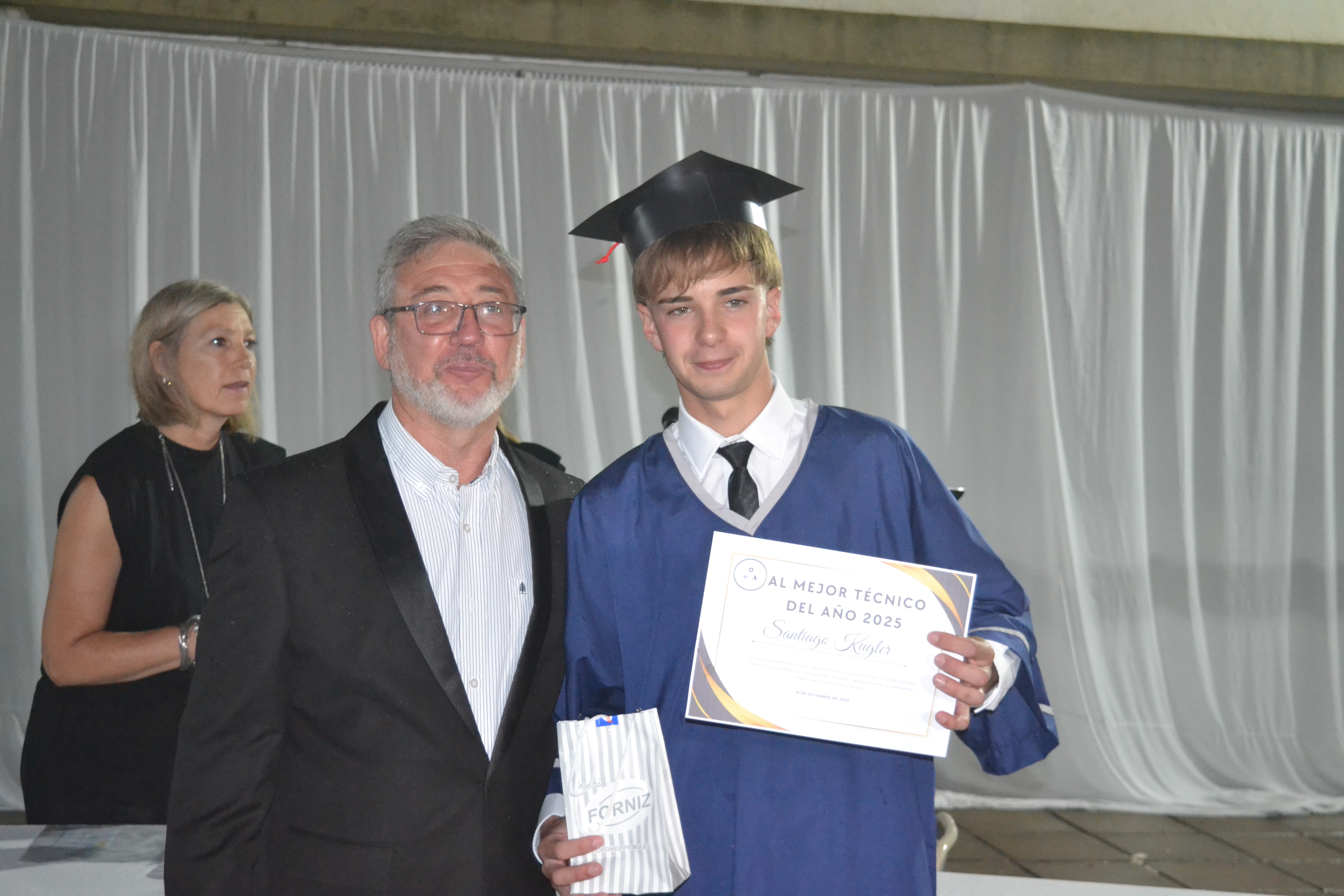 Durante la ceremonia se entregaron menciones especiales a los mejores promedios por orientación: Galli Benjamín en 7° TECER, Lubej Lorea Mirko Valentín en 7° TECET y Vega Danna en 7° TECTA. Además, se distinguió a los mejores compañeros elegidos por sus pares, Tobias Velázquez Gittar, Victoria Heredia y Bruno Verna, siendo y se otorgó la distinción Técnico del Año a Santiago Kugler, en reconocimiento a su trayectoria integral.