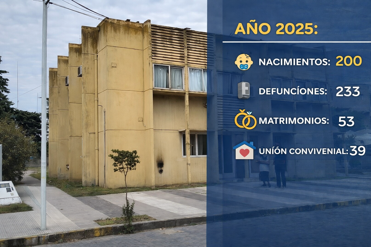 Las cifras correspondientes al último año muestran un panorama demográfico marcado por más defunciones que nacimientos, junto a un parejo registro de matrimonios y uniones convivenciales en la ciudad.