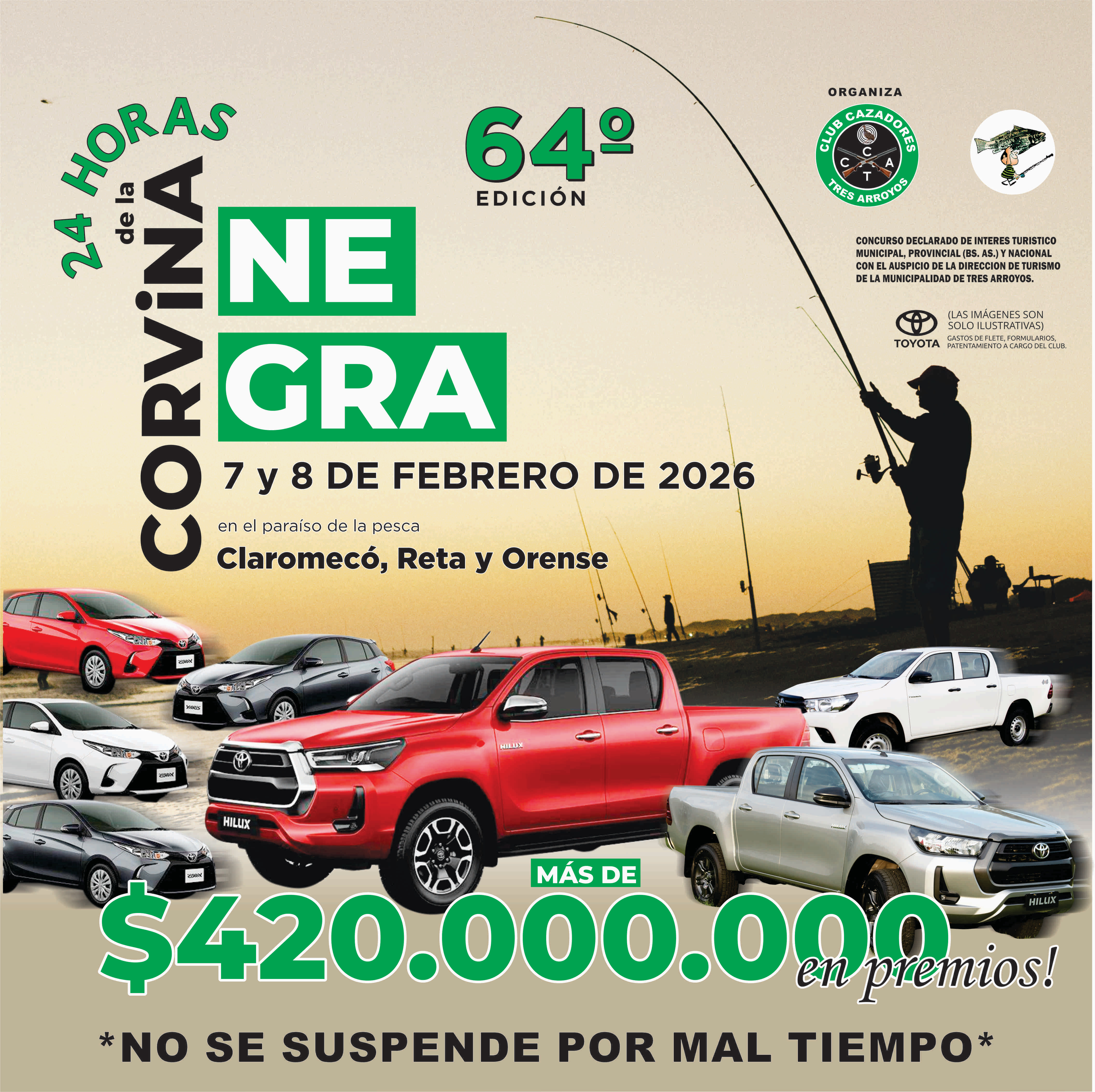 En diálogo con "Multimedio Pringles", Sebastián Suhit, directivo del Club Cazadores, brindó detalles sobre la magnitud del evento y destacó el esfuerzo organizativo que implica. "Los premios más importantes son los 7 vehículos Toyota, 0 kilómetro, que ya están expuestos en Claromecó y pueden ser vistos por la gente", señaló.