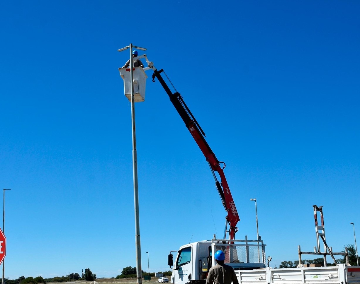 En la mañana de hoy comenzó el recambio de luminarias en la rotonda ubicada en la intersección de las rutas provinciales 51 y 85, en el sentido hacia Tres Arroyos. La tarea se desarrolla en el marco de un trabajo colaborativo entre el Municipio de Coronel Pringles, Vialidad Provincial (Delegación Bahía Blanca) y la Cooperativa Eléctrica local.