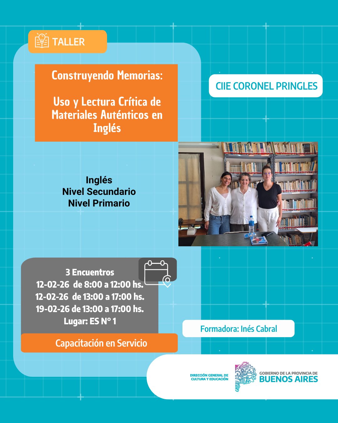 También habrá una propuesta para el área de Inglés, destinada a docentes de primaria y secundaria, titulada "Uso y lectura crítica de materiales auténticos en el aula de inglés", que comenzará el 19 de febrero en la sede del CIIE y aún cuenta con cupos disponibles.