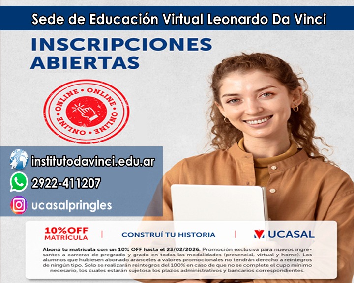 Con el inicio del Ciclo Lectivo 2026 cada vez más cerca, el Instituto Da Vinci de Coronel Pringles presentó su propuesta académica a distancia, a través de la Universidad Católica de Salta (UCASAL), con una oferta que conjuga innovación y tradición.