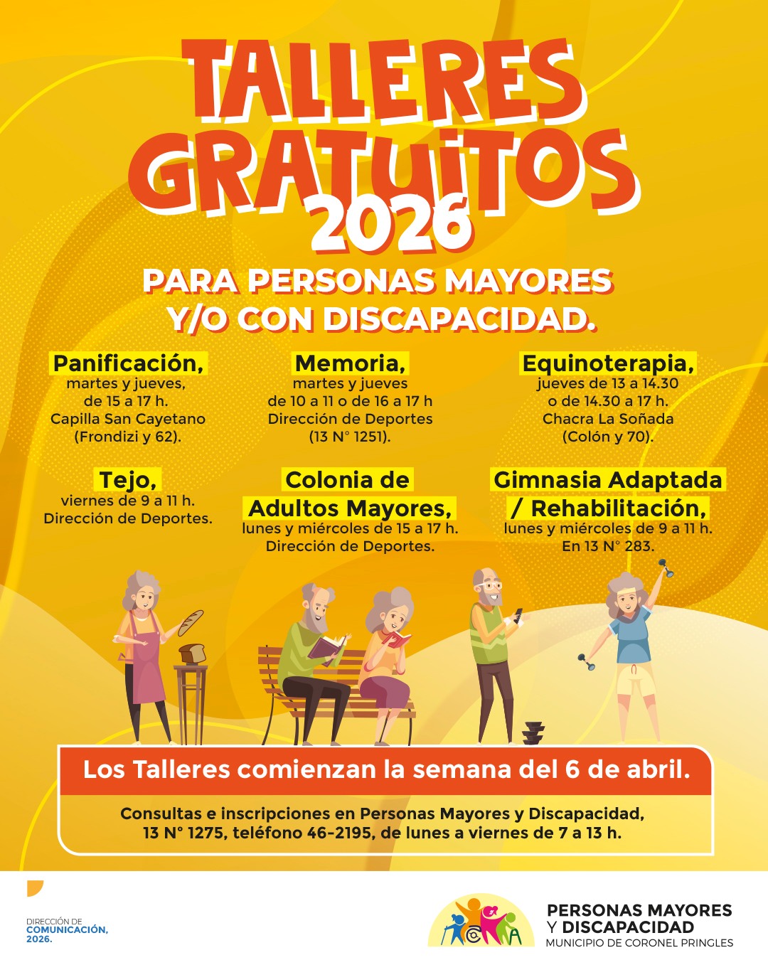 Desde este lunes 6 de abril se pondrán en marcha los Talleres Gratuitos 2026, una propuesta pensada especialmente para personas mayores y/o con discapacidad.