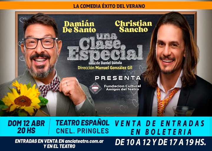 Este domingo 12 de abril, el Teatro Español de Coronel Pringles volverá a ser escenario de una propuesta teatral de primer nivel con la presentación de "Una Clase Especial", una comedia que ha recorrido el país con gran éxito y que promete una noche de humor, reflexión y destacadas actuaciones.