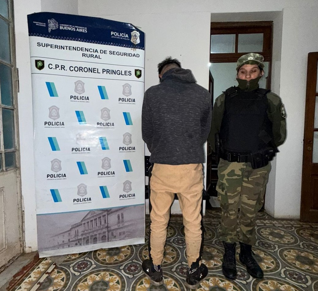 En la jornada del martes,  personal del Comando de Prevención Rural de Coronel Pringles en conjunto con personal del Destacamento Indio Rico procedieron a la aprehensión de dos hombres en un establecimiento rural ubicado en la zona de Indio Rico, sobre ruta 51  tras un llamado telefónico recibido en la dependencia.