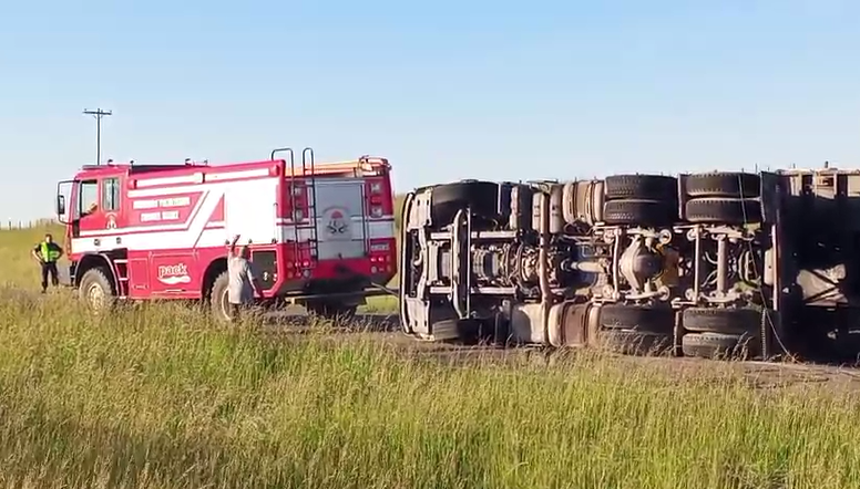 Al lugar acudieron dotaciones de Bomberos Voluntarios de Coronel Suárez. Pablo Iturrioz, jefe del Cuerpo Activo de Bomberos de Coronel Suárez, explicó el procedimiento llevado adelante para liberar la zona y garantizar la seguridad del tránsito. "Lo que intentamos hacer y lo pudimos lograr es liberar el tractor del equipo para poder empezar a liberar lo que es la ruta", indicó. Según detalló, la carga dificultaba las maniobras iniciales: "Como venía cargado y está bastante cargado, lo primero era liberar el tractor para poder empezar ahora a liberar un poco la ruta, así transitan todos los que están parados".