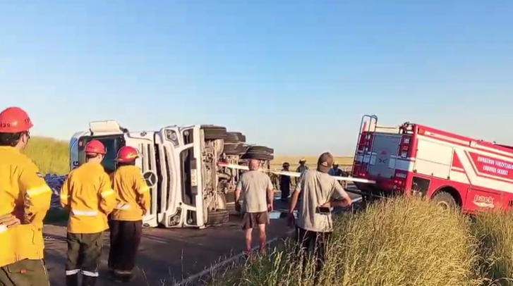 La tarde del viernes dejó un importante despliegue de emergencia sobre la Ruta Provincial 85, donde un camión proveniente de Chile volcó a la altura del establecimiento rural "La Pepita". El accidente ocurrió alrededor de las 18 horas y obligó a interrumpir el tránsito mientras trabajaban los equipos de seguridad. El transporte "?cargado con pastas secas"? perdió el control por causas que aún se investigan. Tras el vuelco, el semirremolque Mercedes Benz quedó atravesado sobre la ruta, mientras que el semi se desplazó hacia la banquina.