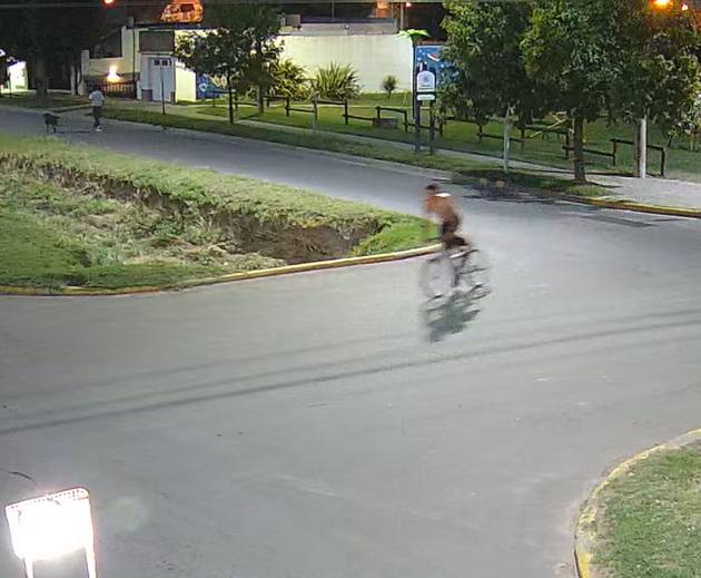 Alrededor de las diez de la noche del domingo se recibió un aviso emitido por el servicio de Ojos en Alerta donde se denunciaba la sustracción de una bicicleta rodado 24, de color gris todo terreno, que una niña había dejado junto a una hamaca de la plaza de calle José García de la Calle y Dardo Rocha (13 y 56). Dos personas de sexo masculino pasaron caminando junto a la bicicleta, y uno de ellos, con el torso desnudo, y con un pantalón corto de color negro, tomó la bicicleta, y se escapó a toda velocidad del lugar.