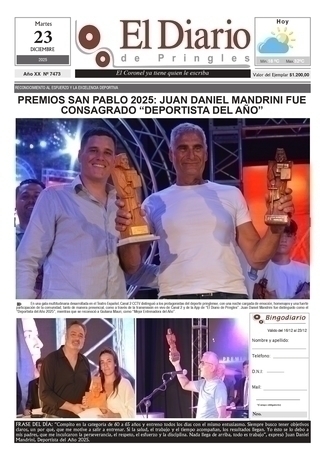 Te invitamos a completar tu correo para recibir gratis los lunes el menú seleccionado especialmente por el diariodepringles.com.ar, con las principales noticias locales y regionales de la semana.