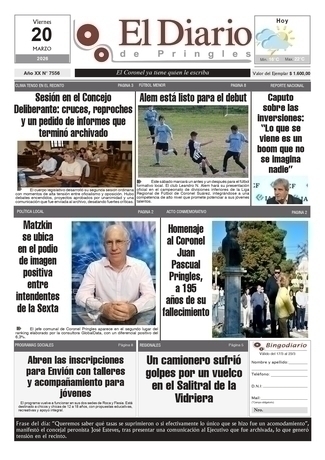 Por su parte,Diego Pelegrinelli (Secretario de Planeamiento, Obras y Servicios Públicos)explicó que hace más de un año que se está trabajando con la Delegación BahíaBlanca de la Dirección Provincial de Hidráulica. "Se rediseñó todo el planhídrico para Coronel Pringles. Se recalcularon ramales, se actualizó elproyecto que era del -92 y por eso tenemos esos valores de más de 5 milmillones. Quiero agradecer también a ellos porque llevan más de un año haciendotrabajo de relevamiento, de proyecto y hoy tenemos un proyecto para aquí, unproyecto para el Roca y para distintos sectores de la ciudad que sufren o hansufrido el anegamiento en algún momento y que son los distintos trabajos quehacemos con provincia para ver si podemos conseguir ahora el financiamiento".