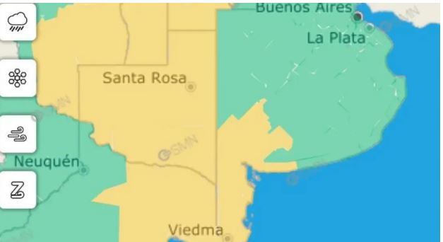 A partir de la media mañana del domingo 19 y hasta las primeras horas de la madrugada del lunes 20, se prevé un incremento en la intensidad del viento del sector norte sobre la franja oeste de la provincia, especialmente en el sudoeste, motivo por el cual el SMN emitió una alerta amarilla.