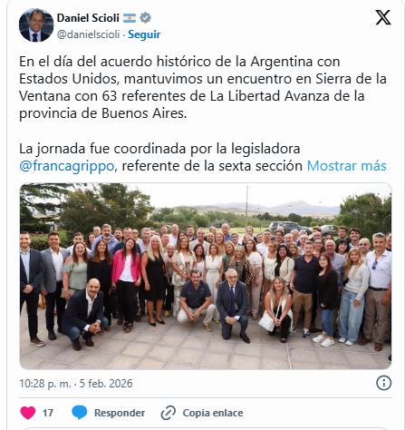 Ayer, el secretario de Turismo y Ambiente de la Nación Daniel Scioli visitó la comarca serrana y mantuvo un encuentro con referentes de La Libertad Avanza de la Sexta Sección.