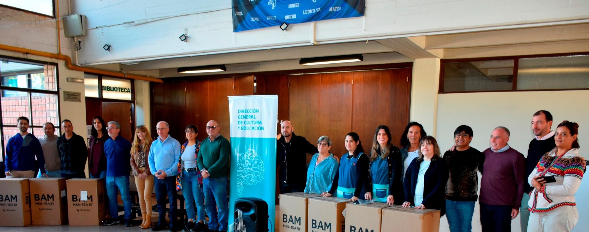 En la mañana del jueves 9 de abril, en el SUM de la Escuela Media Nº 1, se llevó a cabo la entrega de diez altoparlantes multifunción destinados a establecimientos educativos del distrito.