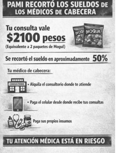 Los profesionales denuncian que la normativa implica recortes de hasta el 50% en sus ingresos, al eliminar el pago por consulta presencial y concentrar todas las prestaciones en una cápita fija de $2.100 por afiliado.