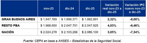 Entre otros de los datos que brinda el informe del CEPA se detalla el haber medio que perciben los jubilados en territorio bonaerense, en donde concentra el 40% de todos los jubilados del país (casi 2,8 millones de personas).