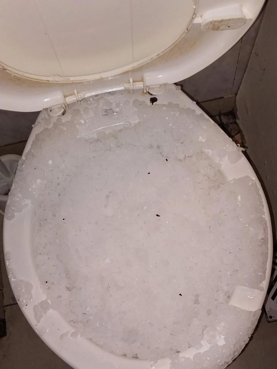 Incluso, una de las fotografías muestra a un inodoro repleto de restos de granizo.